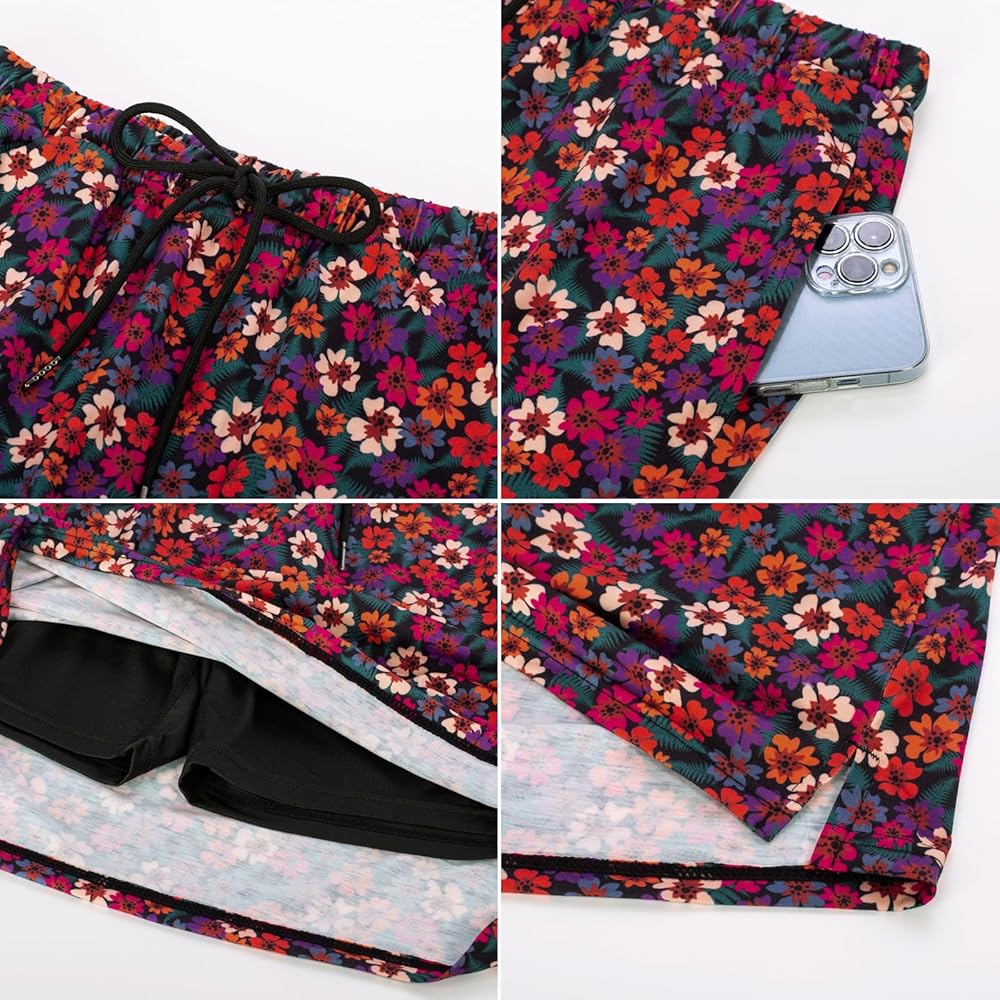 • ✔التصميم - شورت شبكي بالأسفل، تصميم برباط للخصر وجيوب جانبية، تحتوي السراويل الرياضية النسائية على طبقتين مع تنورة خارجية وشورت داخلي، عصرية ومريحة في الارتداء.