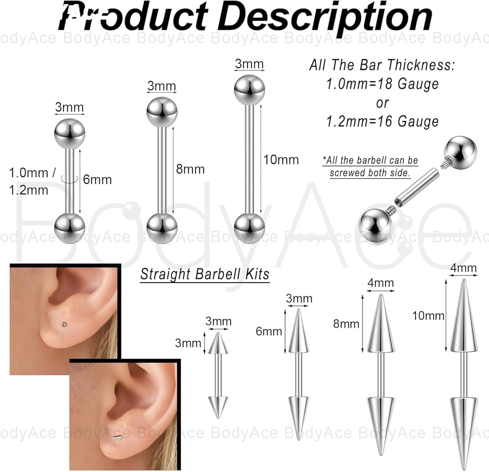 💎 مادة مجوهرات الحواجب المدببة 💎 مسامير ثقب الشفاه ذات القضيب المستقيم مصنوعة من الفولاذ الجراحي سعة 316 لتر. حواف المجوهرات المستقيمة المثقوبة ناعمة مصقولة ومريحة في الارتداء. حلقات حواجب للنساء والرجال مناسبة للبشرة الحساسة، مقاومة للصدأ والتآكل، تضمن استخدامها لفترة طويلة.