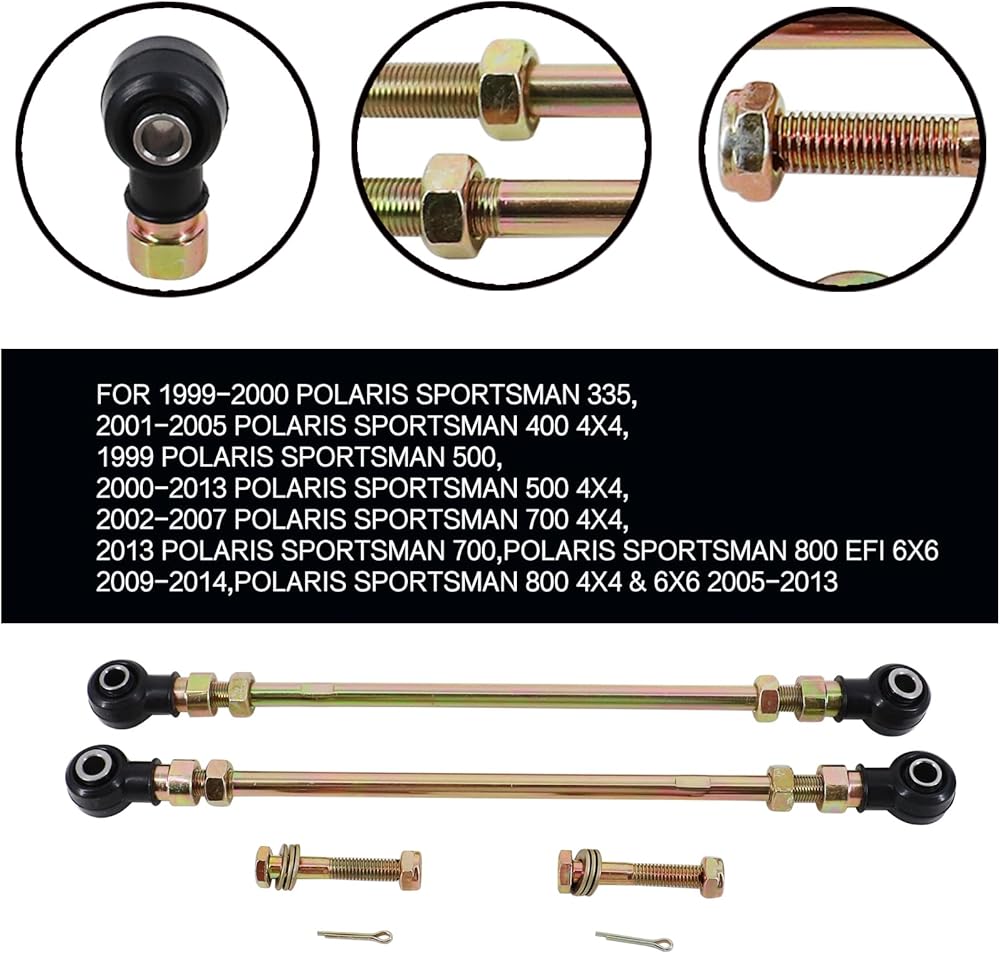 • 【Tie Rod End Replacement Fit for 1】for 1999-2000 Polaris Sportsman 335,2001-2005 Polaris Sportsman 400 4x4, 1999 polaris sportsman 500, 2000-2013 Polaris Sportsman 500 4x4,2002-2007 Polaris Sportsman 700 4x4,2013 Polaris Sportsman 700,Polaris Sportsman 800 EFI 6x6 2009-2014,Polaris Sportsman 800 4x4 & 6x6 2005-2013