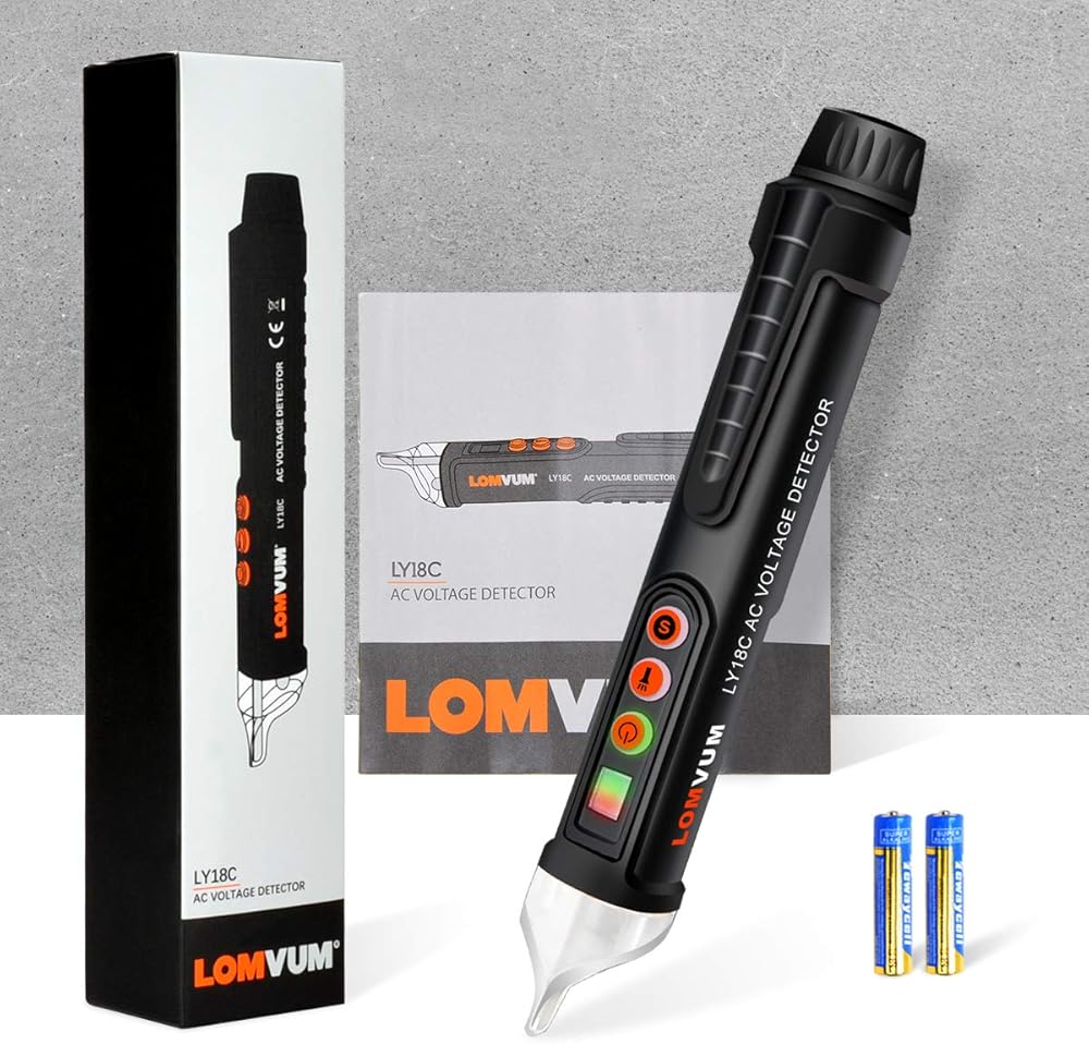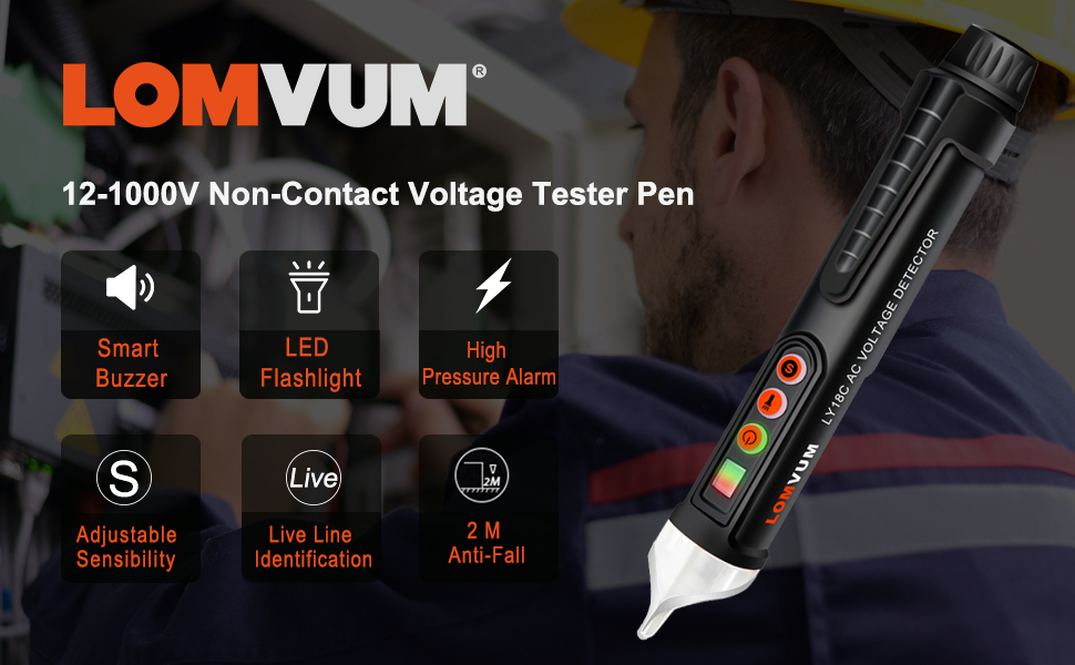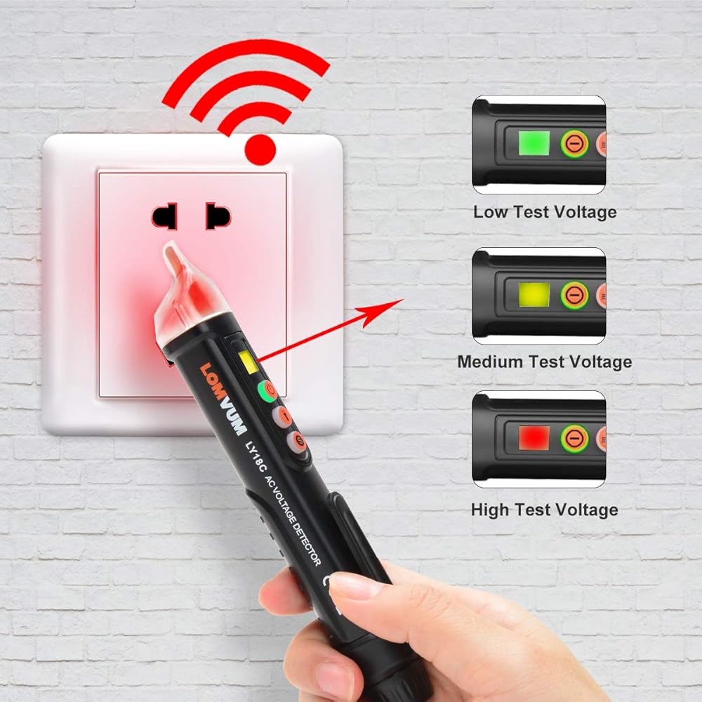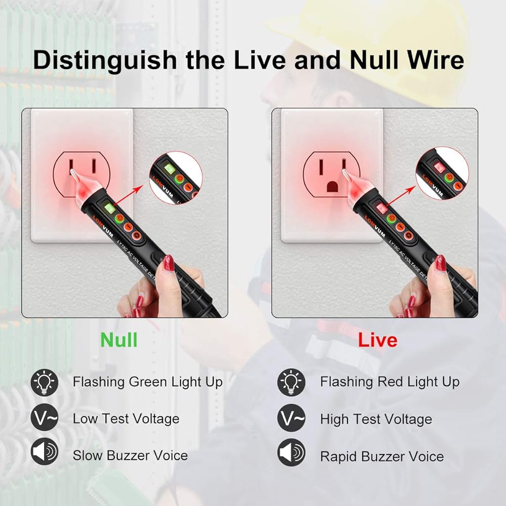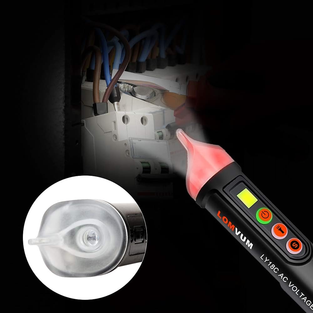 جهاز اختبار الجهد الكهربي، LOMVUM جهاز اختبار الجهد الكهربي المزدوج غير المتصل ثنائي المدى 12 فولت - 1000 فولت / 48 فولت - 1000 فولت مع مصباح يدوي LED، وضع التنبيه وحكم السلك المباشر/الفارغ