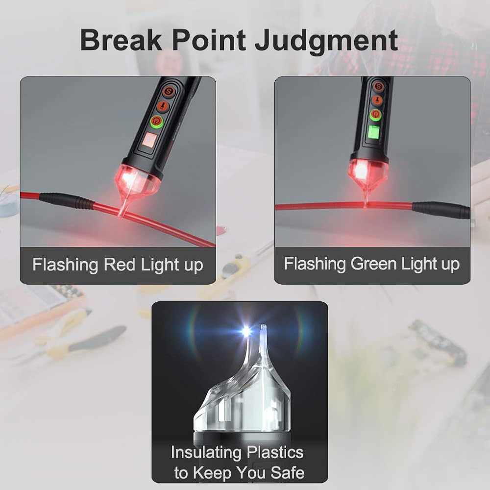 • يكتشف جهاز اختبار الجهد الكهربي سلك الخط والسلك الفارغ بالإضافة إلى نقطة الكسر بذكاء، سلك خطي مع صفارة أسرع ومؤشر أحمر. حجم صغير مع خطاف قلم رصاص محمول مناسب جدًا للحمل أثناء الاستخدام
