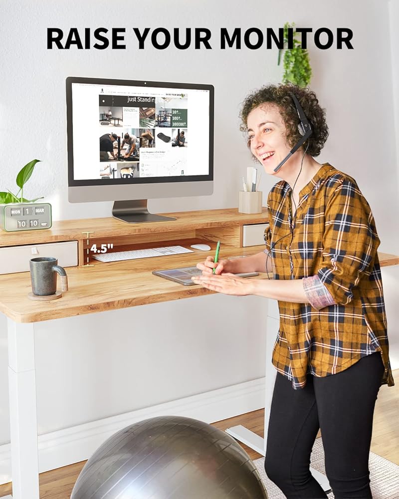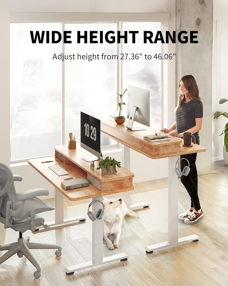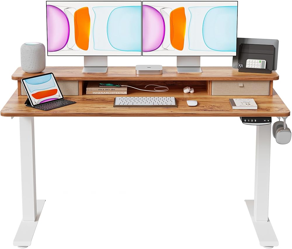 The BANTI Height Adjustable Electric Standing Desk helps you change the way you work. You can easily switch from sitting to standing in seconds, relieving neck and shoulder discomfort and back pain; 2 large drawers keep your desk tidy.