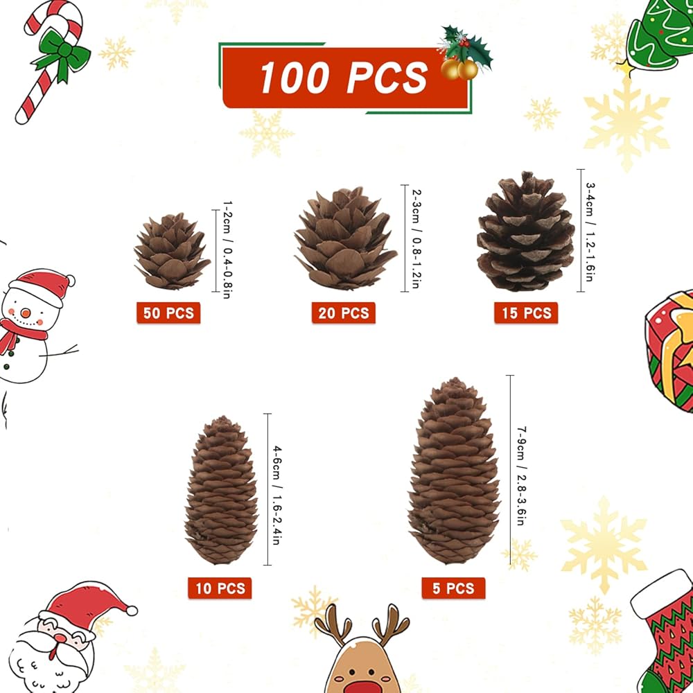 100 Pieces Nature Pine Cones Rustic Pinecones Ornaments for Autumn Christmas Holiday Decoration