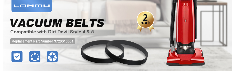 أحزمة مكنسة كهربائية LANMU لنمط Dirt Devil 4/5 Featherlite Powerlite Swivel Glide Power Max Pet المكانس الكهربائية المستقيمة، رقم الجزء البديل 3720310001 (عبوتان)