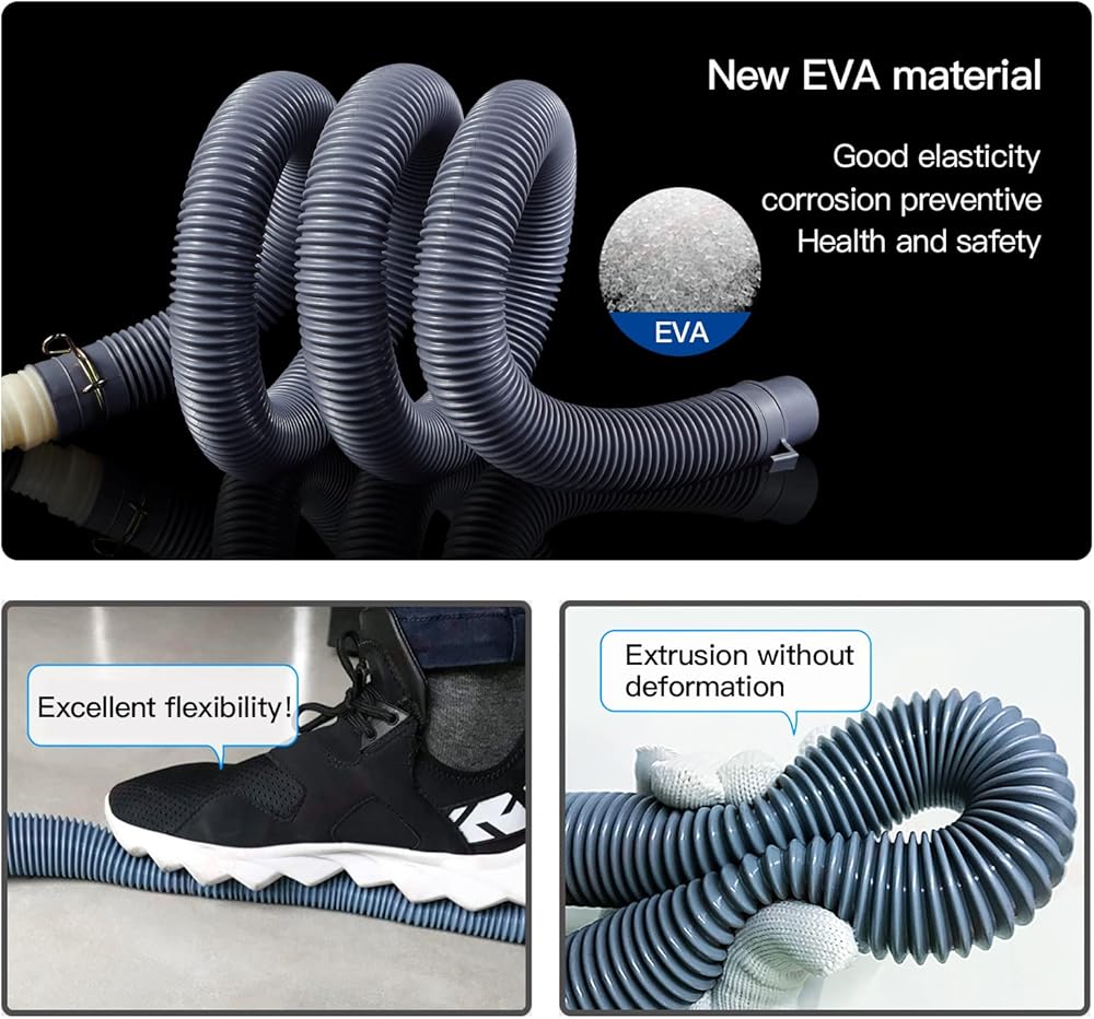 أنبوب الصرف وأنبوب التمديد لهذه الغسالة المموجة الناعمة مصنوعان من مادة EVA عالية الجودة، وهي غير سامة، ومضادة للشيخوخة، ويصعب تشويهها، وناعمة في التصريف ومتينة.