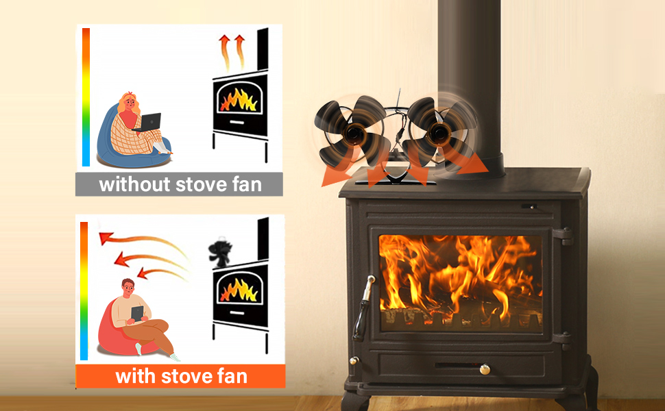 [تشغيل منخفض الضوضاء] توفر مروحة الموقد التي تعمل بالحرارة مع ضوضاء أقل من 25 ديسيبل بيئة هادئة ومريحة. استخدم مروحة الموقد لمواقد حرق الخشب، واستمتع ببيئة دوران الهواء الدافئة في الشتاء.