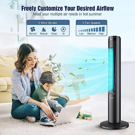 【سرعة 26 قدمًا في الثانية】 تعمل مروحة البرج Grelife مقاس 42 بوصة على تنشيط كل بوصة من الهواء في مساحة المعيشة الخاصة بك بسرعة تصل إلى 26 قدمًا في الثانية وتوفر راحة تبريد طوال اليوم. يناسب تمامًا غرف المعيشة والمكاتب المنزلية والمطابخ وغرف النوم والمزيد.