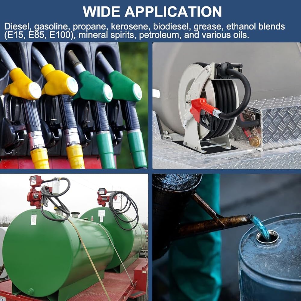 ✅توافق متعدد الاستخدامات - يتوافق خرطوم وقود المزرعة هذا مع مجموعة واسعة من السوائل بما في ذلك الديزل والبنزين والبروبان والكيروسين والديزل الحيوي والديزل الحيوي بنسبة 100% والديزل الحيوي B-20 والشحوم والإيثانول E15 وE85 وE100 وE10 والأرواح المعدنية، البترول والزيوت وأنواع مختلفة من الزيوت، مما يجعلها خيارًا متعدد الاستخدامات لاحتياجات توزيع الوقود المختلفة.