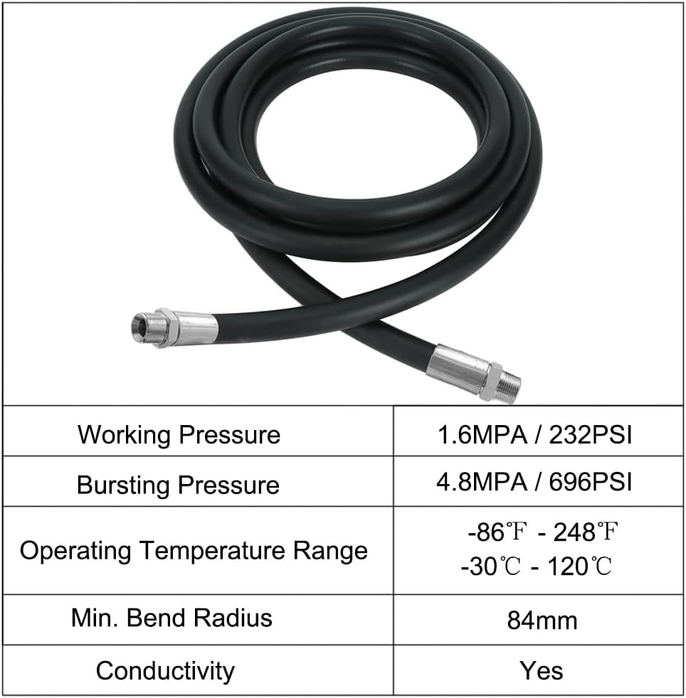 ✅نطاق درجة حرارة واسع - مصمم للعمل في درجات حرارة من -86 درجة فهرنهايت إلى 248 درجة فهرنهايت (-30 درجة مئوية إلى 120 درجة مئوية)، خرطوم وقود الكيروسين هذا مناسب لبيئات مختلفة، مما يجعله خيارًا متعدد الاستخدامات لاحتياجات نقل الوقود الخاصة بك.