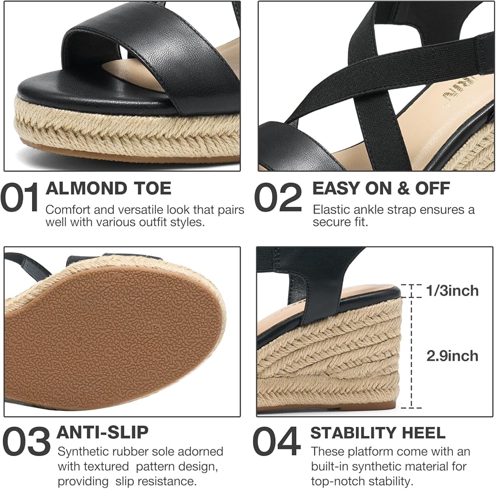 • [مضاد للانزلاق والدعم]: تأتي هذه الأحذية ذات الكعب العالي للسيدات مع مادة صناعية مدمجة لتحقيق ثبات وثبات عاليين، لذلك يمكنك الخروج بثقة وراحة. بالإضافة إلى ذلك، تتميز الصنادل ذات الكعب المنخفض بنعل مطاطي صناعي مزين بتصميم نمط مزخرف، لا يوفر مقاومة للانزلاق فحسب، بل يوفر أيضًا لمسة فريدة من الأناقة. ارتفاع المنصة: 1/3 بوصة، ارتفاع الكعب: 2.9 بوصة.