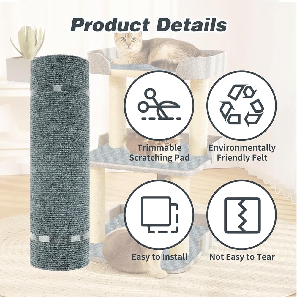 🐾【مادة السلامة】عمود خدش سجادة القطط مصنوع من لباد صديق للبيئة، والجزء السفلي مصنوع من مادة ذاتية اللصق عالية اللزوجة، وهي آمنة ومتينة وليس من السهل تمزيقها.