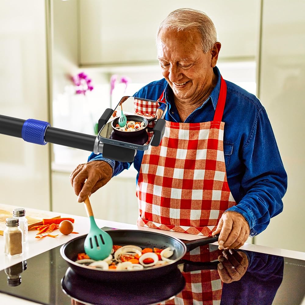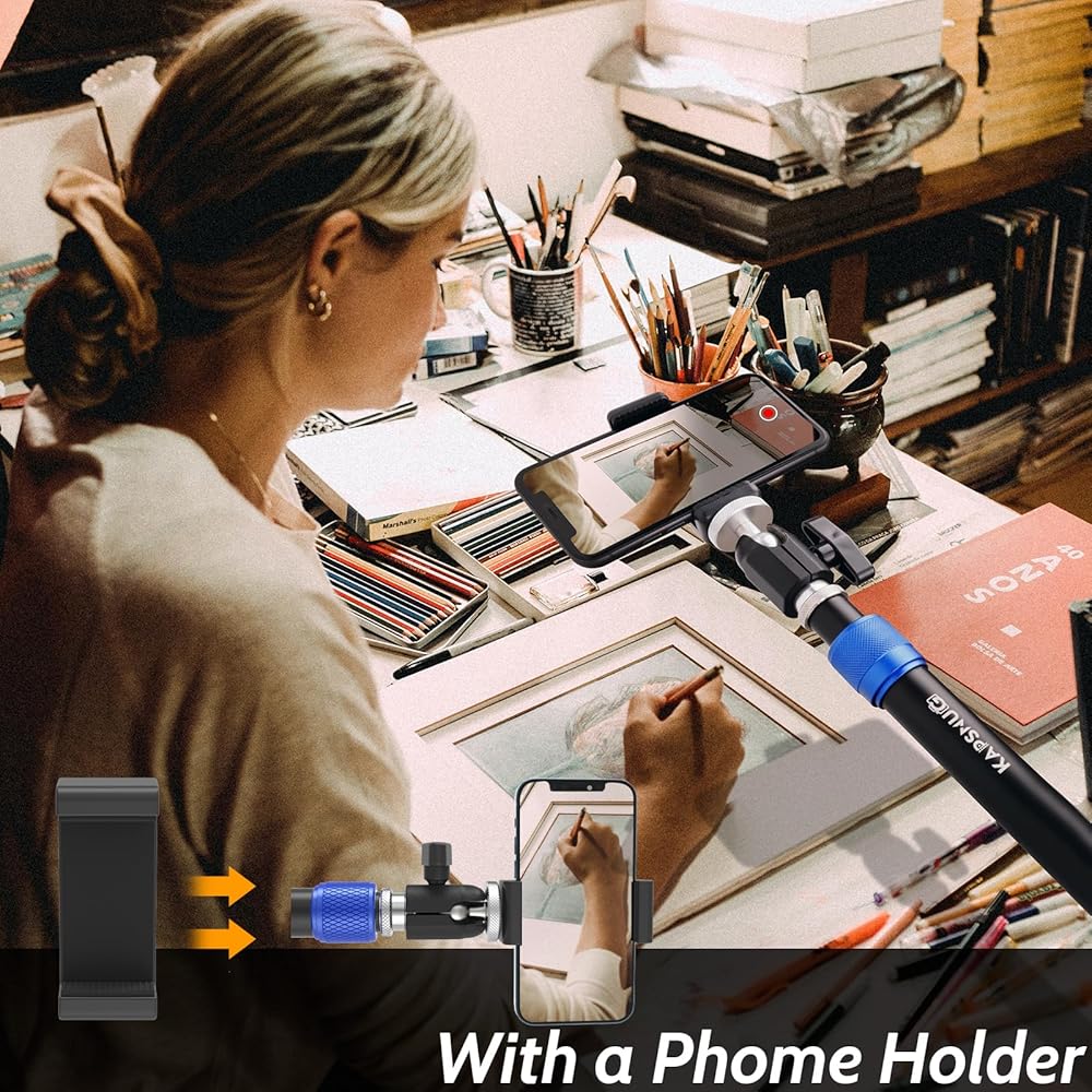 يأتي مع حامل هاتف ذكي، يمكنك تثبيت هاتفك على الحامل للتصوير في الوقت الحقيقي أو البث المباشر، وهو مريح للغاية ومناسب للعديد من سيناريوهات التصوير.