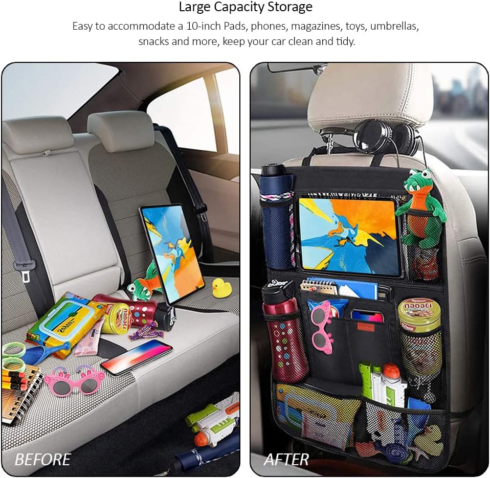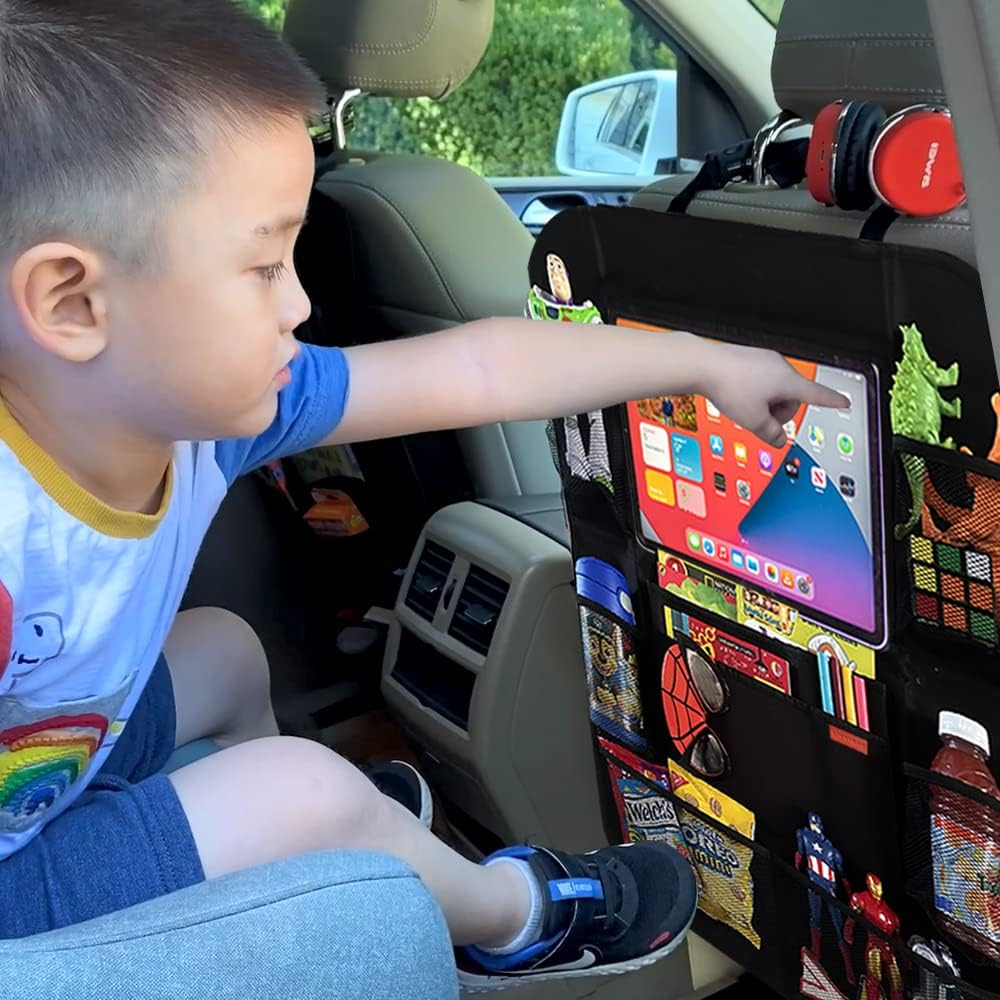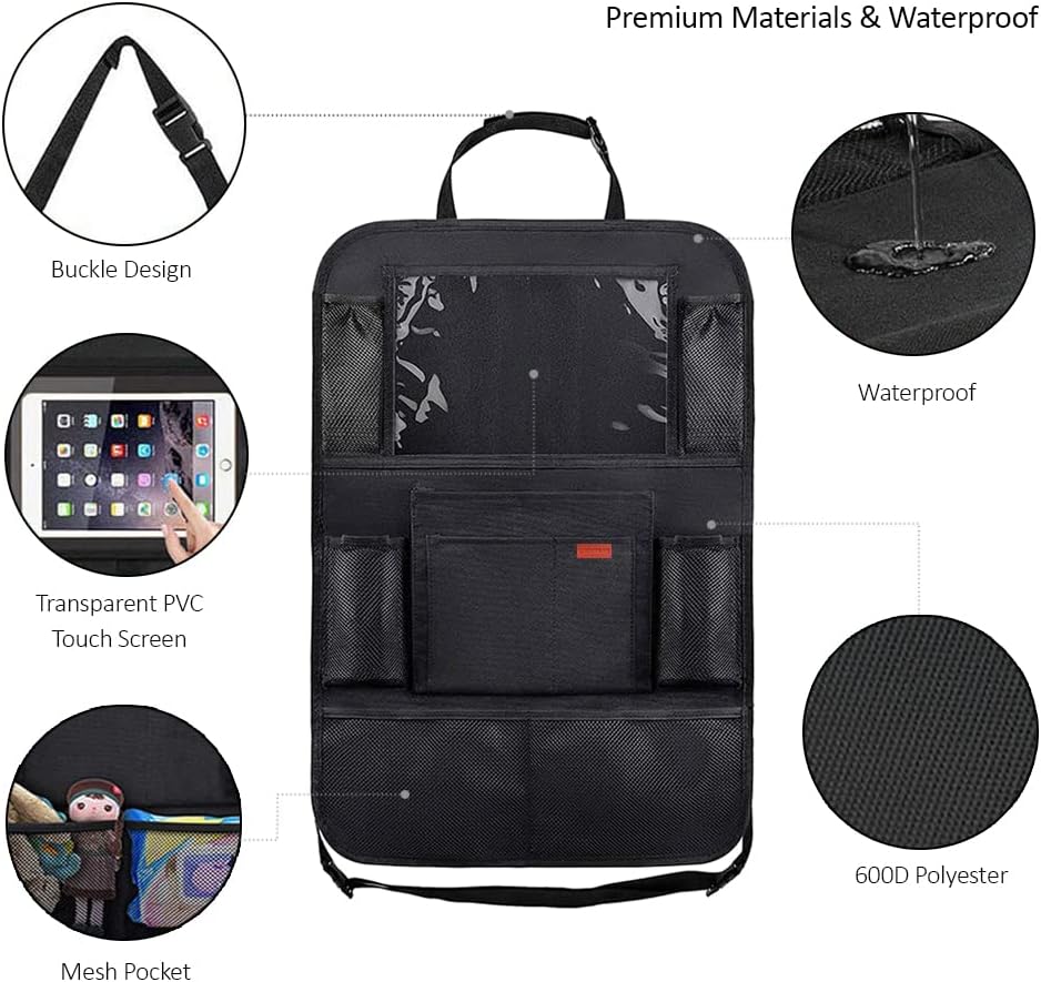 حامل الكمبيوتر اللوحي الشفاف: منظم المقعد الخلفي للسيارة مع حامل الكمبيوتر اللوحي الشفاف سيجعل أطفالك مشغولين وسعداء. لقد استخدمت مواد مصنوعة خصيصًا للمس الشاشة بسهولة.
