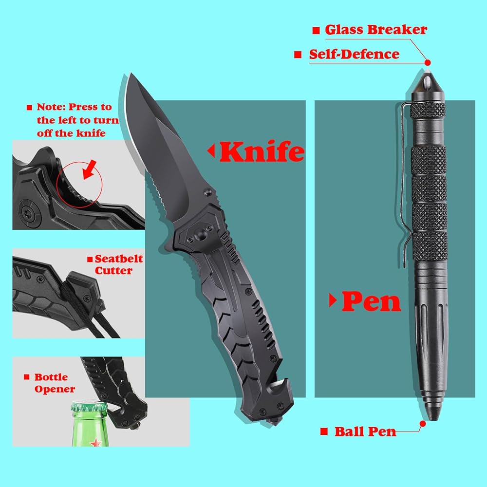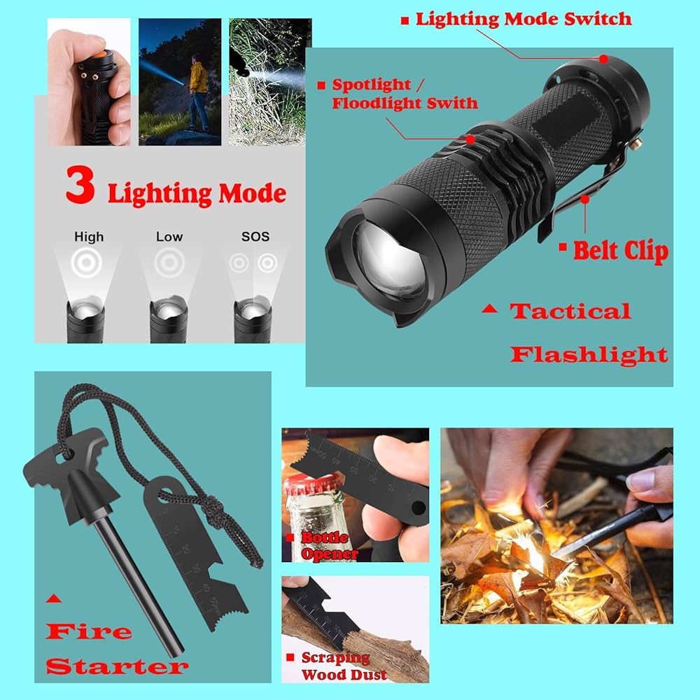 【أفكار رائعة لهدية عيد الميلاد للرجال والمراهقين】هذه مجموعة أدوات نجاة احترافية وشاملة، هدايا مثالية للرجال الذين يستمتعون بالتخييم والصيد وصيد الأسماك والأنشطة الخارجية الأخرى. هدية رائعة لعيد الميلاد للرجال وللآباء والأزواج والأولاد المراهقين. فاجئ أحبائك بمجموعة أدوات النجاة الاستثنائية هذه