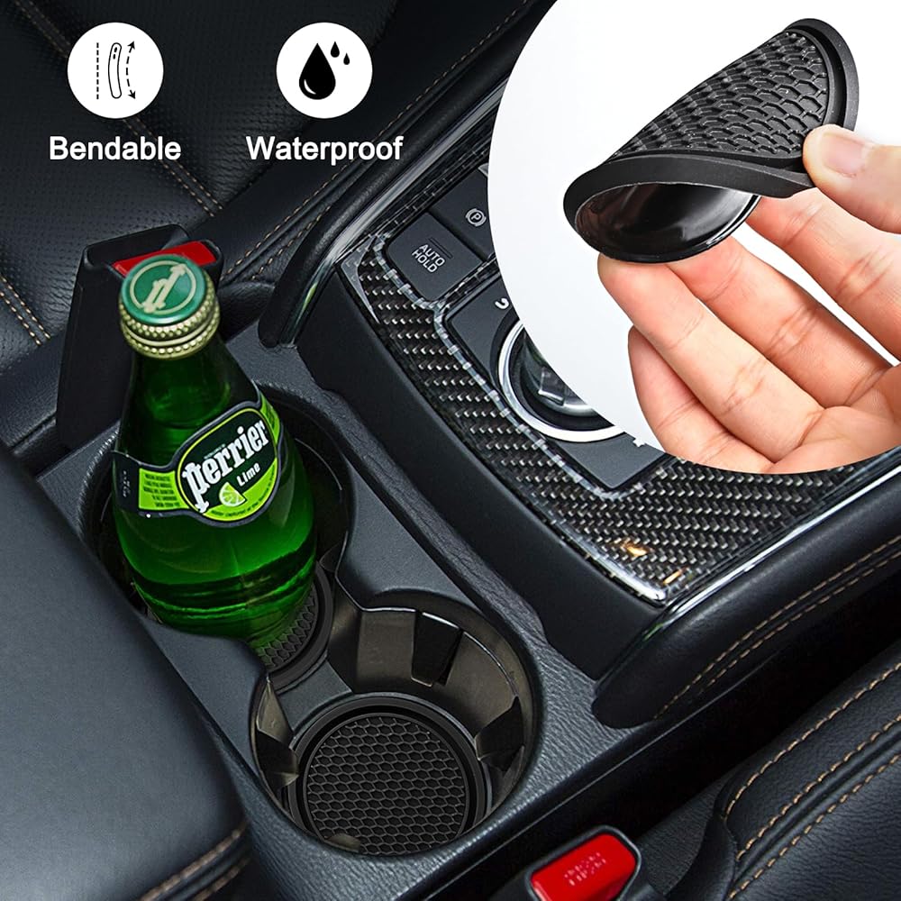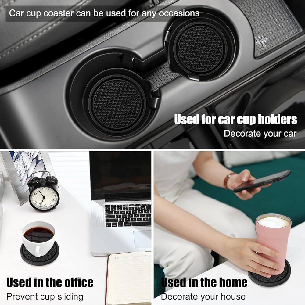 • Excellent Design--Our cup coaster uses eco-friendly PVC material, no irritating smell. Anti-slip and waterproof with strong durability.The car cup holder coasters are anti-slip, waterproof and dust-proof, protecting the original car cup holder slot will not be damaged from water stains, dirt, dust and scratches.
