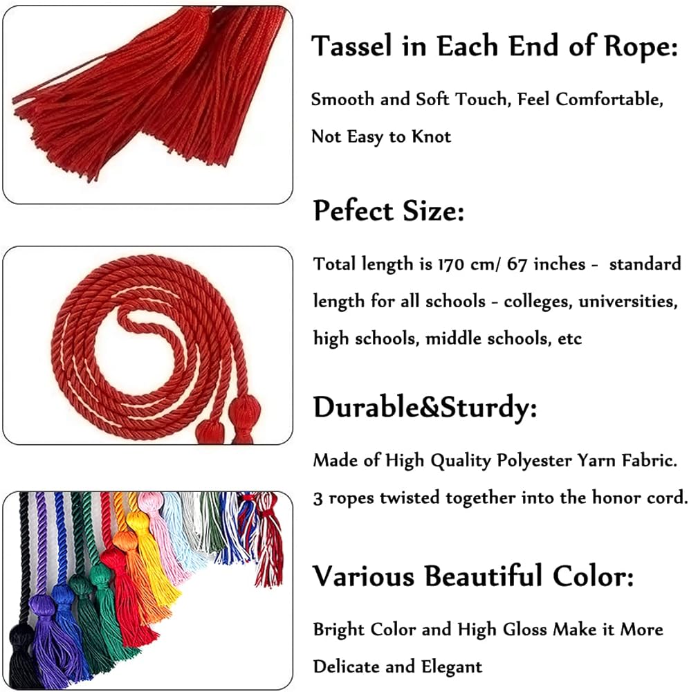 LEFV Graduation Honor Cords 67 inch Polyester Yarn Tassel Twisted Rope for Graduation Students