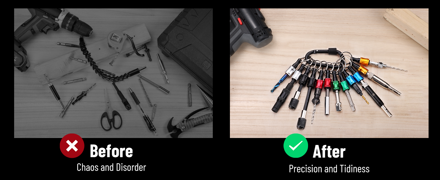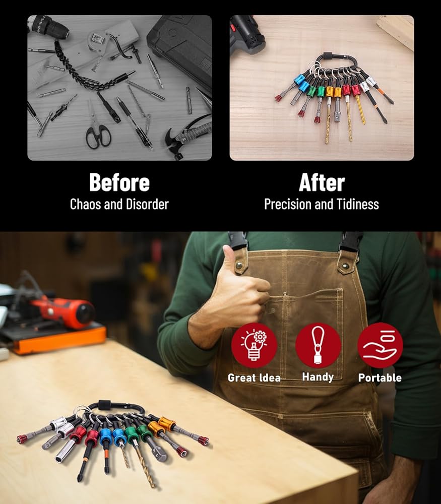[محمول ومتعدد الاستخدامات] - منظم رؤوس المثقاب صغير وسهل الحمل، ومناسب لنقل جميع أنواع المثقاب والمفكات وما إلى ذلك. ويمكن استخدامه أيضًا كمشبك للتنزه في الهواء الطلق.