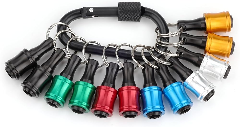 12 قطعة من katerk 1/4 بوصة حامل لقم مفك براغي من سبائك الألومنيوم، خفيف الوزن سريع التغيير، شريط تمديد سلسلة المفاتيح، محول برغي الحفر قابل للحمل (مع حلقة تسلق سوداء)