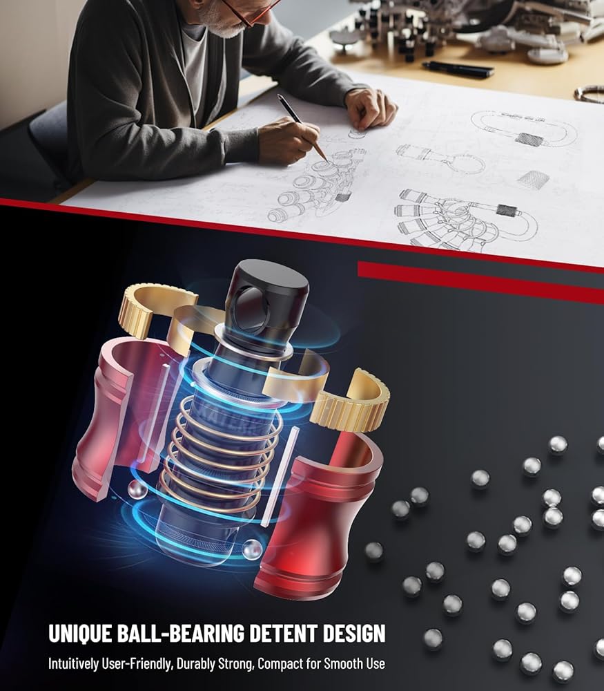 [من السهل تحرير حلقة السحب/الدفع] - يحتوي حامل اللقمة هذا على محمل كروي يثبت اللقمة في مكانها ويعمل بشكل مشابه للقفل المنزلق أو الزنبركي.