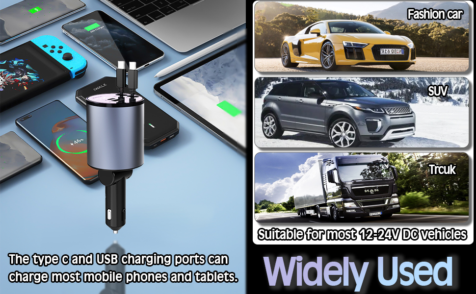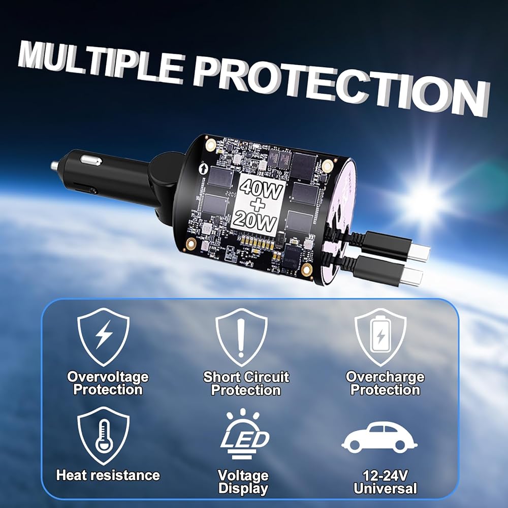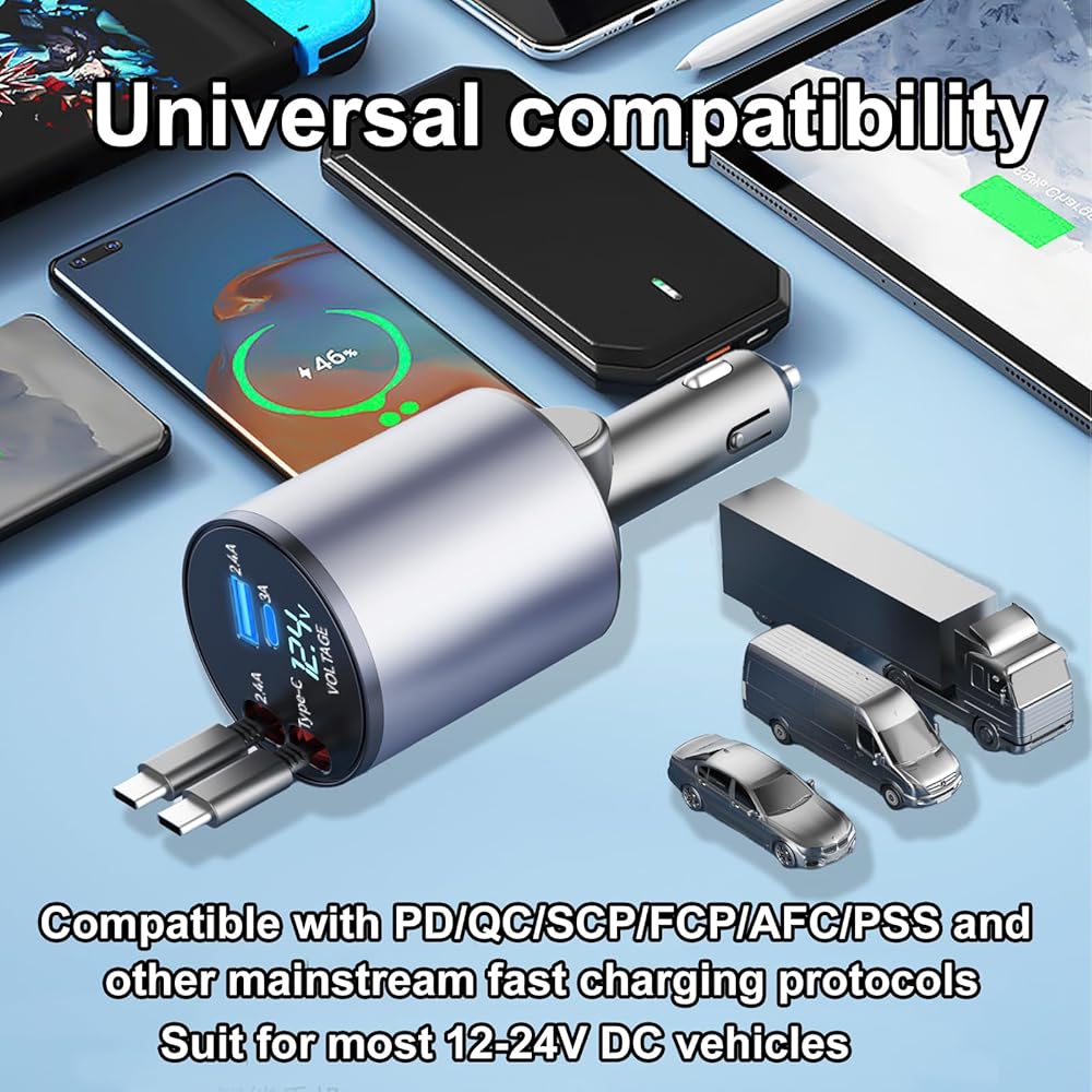 • 【شهادة بروتوكول الشحن السريع المتعدد】شاحن السيارة القابل للسحب المتوافق مع الأجهزة يدعم PD وQC3.0 وSamsung AFC وMTK وFCP وأجهزة مختلفة مثل الهواتف والأجهزة اللوحية ووحدات GPS وأجهزة الكمبيوتر المحمولة والمحول وما إلى ذلك. كن مثل iPhone 15 برو/ماكس، سامسونج جالاكسي/نوت، جوجل بيكسل.