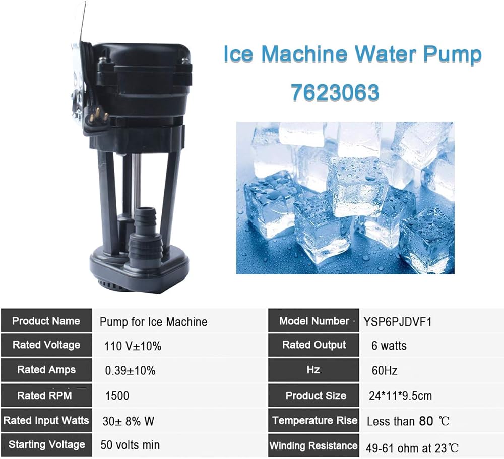 • COMPATIBLE WITH: Ice Machine Water Pump Compatible with Manitowoc 7623063 YSP6PJDVF1 6W 110V±10% 0.37A 60 Hz
