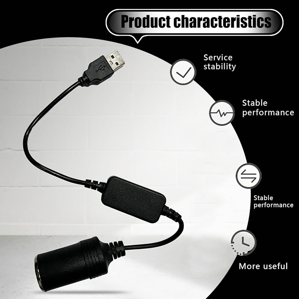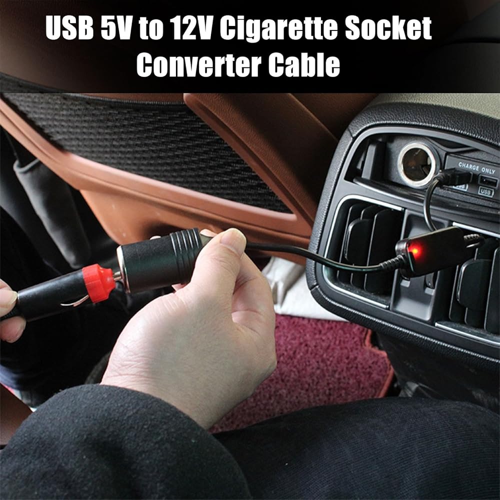 Crynod 1 PC Car USB Port Boost Cable, 5V to 12V Cigarette Lighter Female Converter Adapter, Mobile Power Supply Connected to Driving Recorder E-Dog, Universal Accessories for Most Cars (Black)