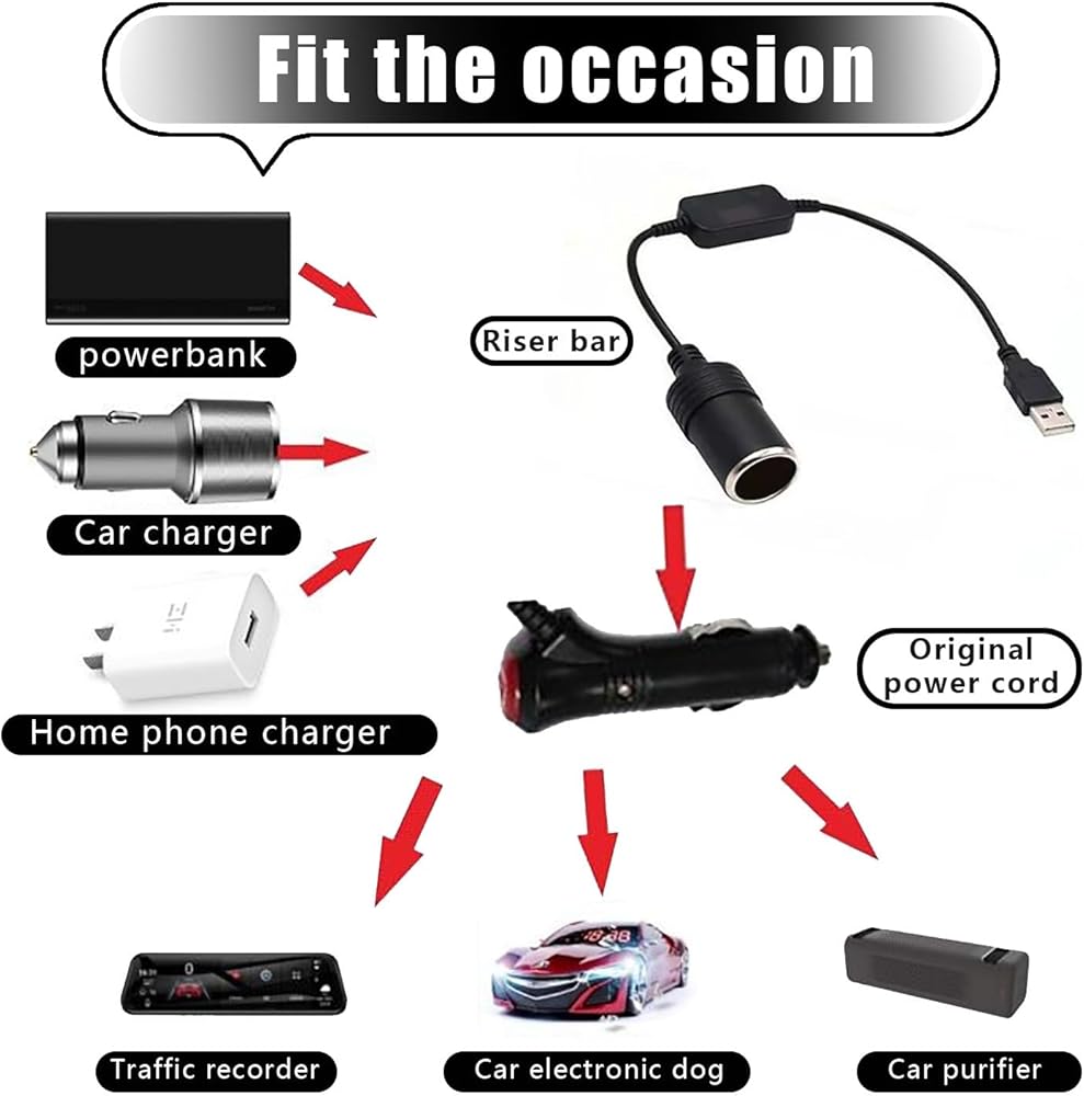 Easy to Use: The product is plug-and-play and can easily power the devices inside your car using a power bank. Note that this product does not support high-current devices such as car vacuum cleaners, car air compressors, air pumps, refrigerators, heating equipment, and rice cookers.