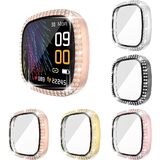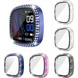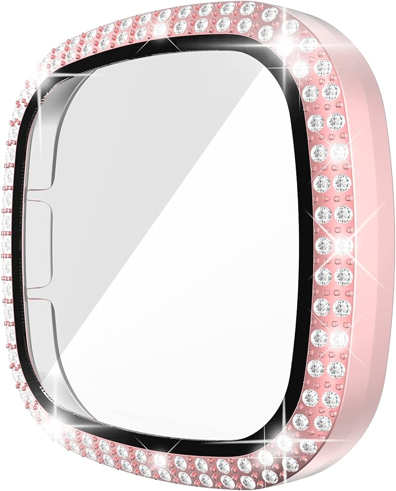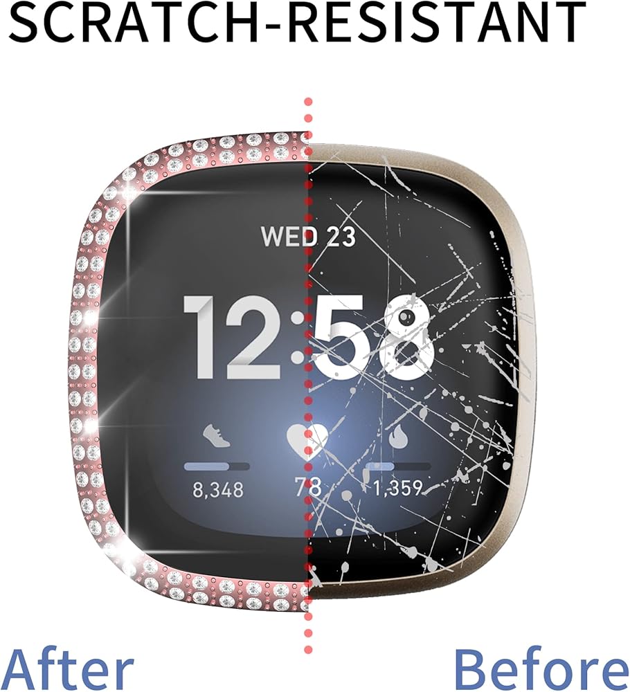 [عبوة من 5 قطع] RICHONE متوافقة مع حافظة ساعة Fitbit Sense وVersa 3، غطاء Bling Diamonds مع واقي شاشة زجاجي مقوى ثلاثي الأبعاد (أسود + فضي + ذهبي + وردي + ذهبي وردي)