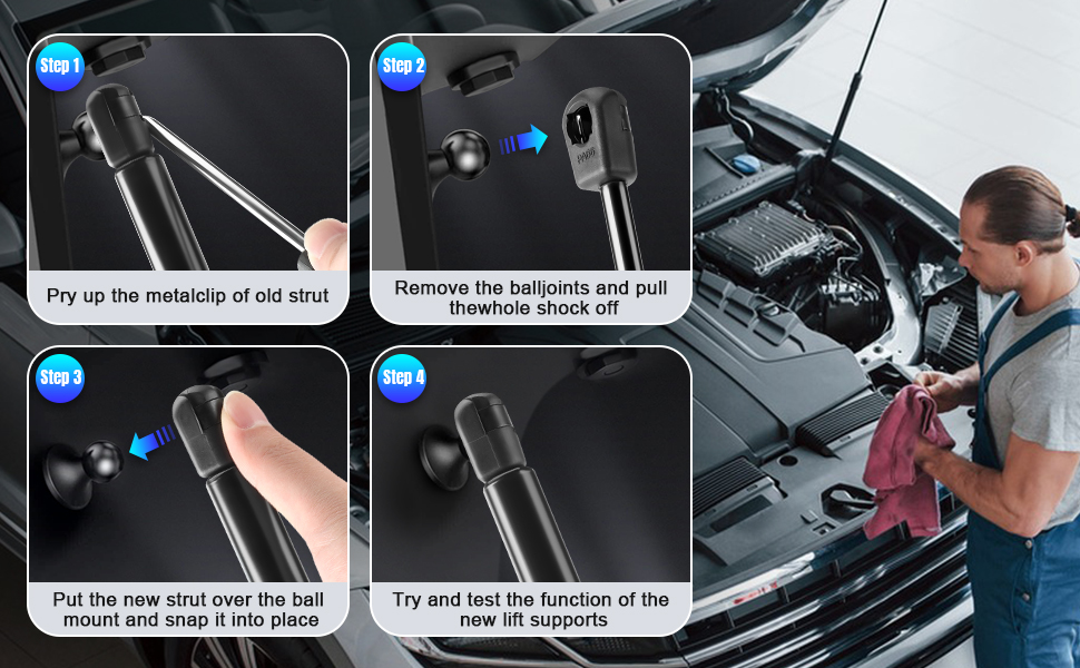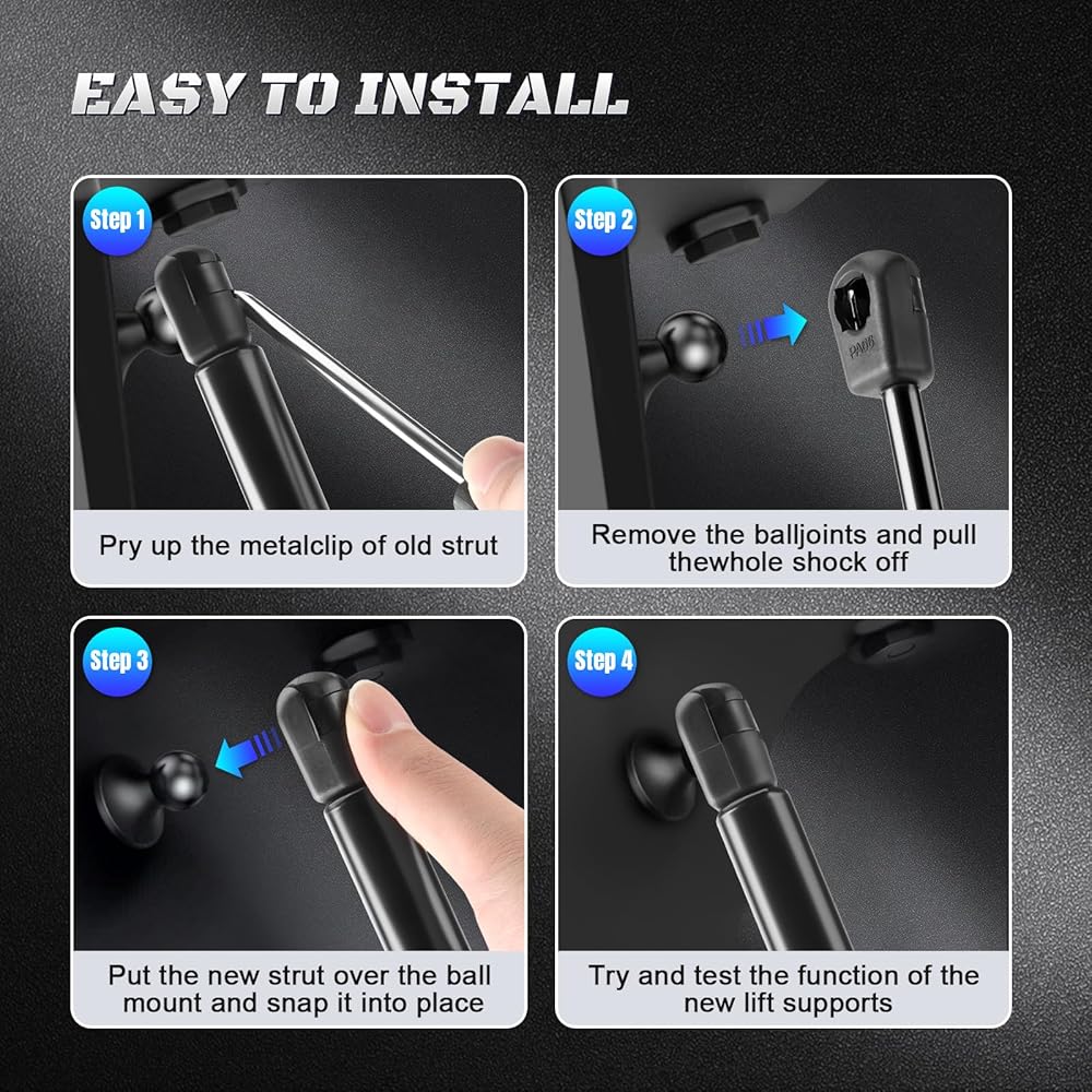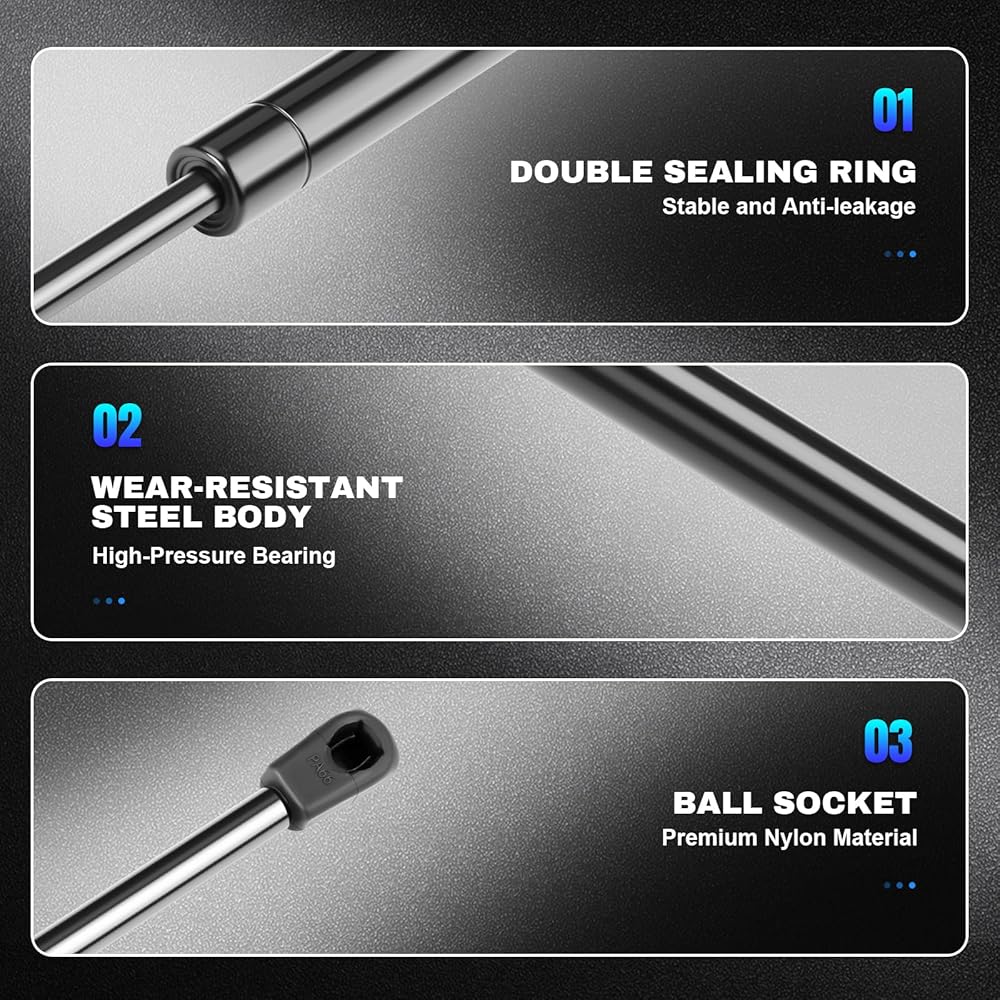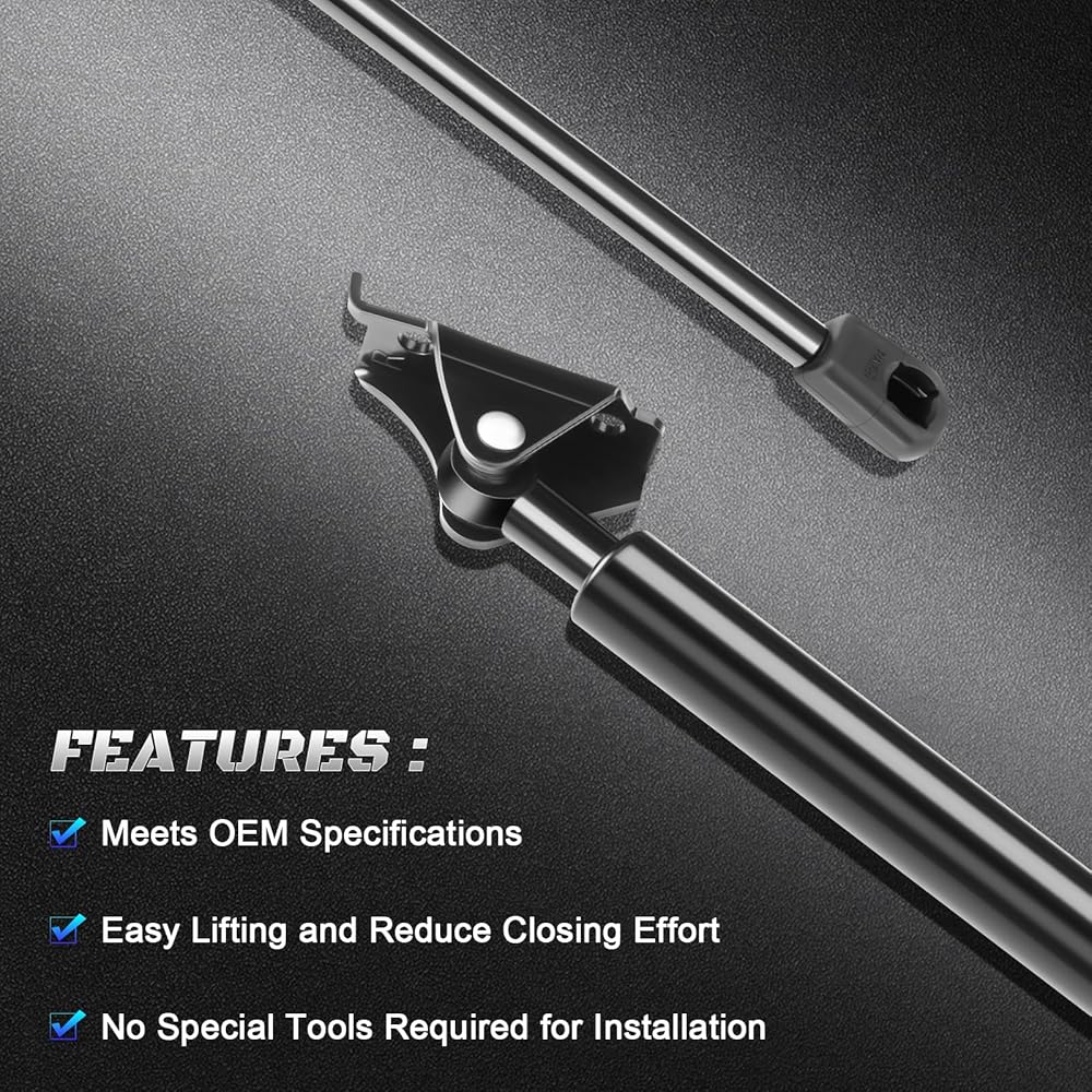 • ✔عبوة المنتج: تشتمل على قطعتين من صدمات الغاز، وتغليف قوي من الورق المقوى الثقيل وأكياس عمود الهواء. دعامة دعم الرفع البديلة للمعدات الأصلية، قابلة للتطبيق مباشرة. سهل التركيب، لا يتطلب أدوات خاصة.