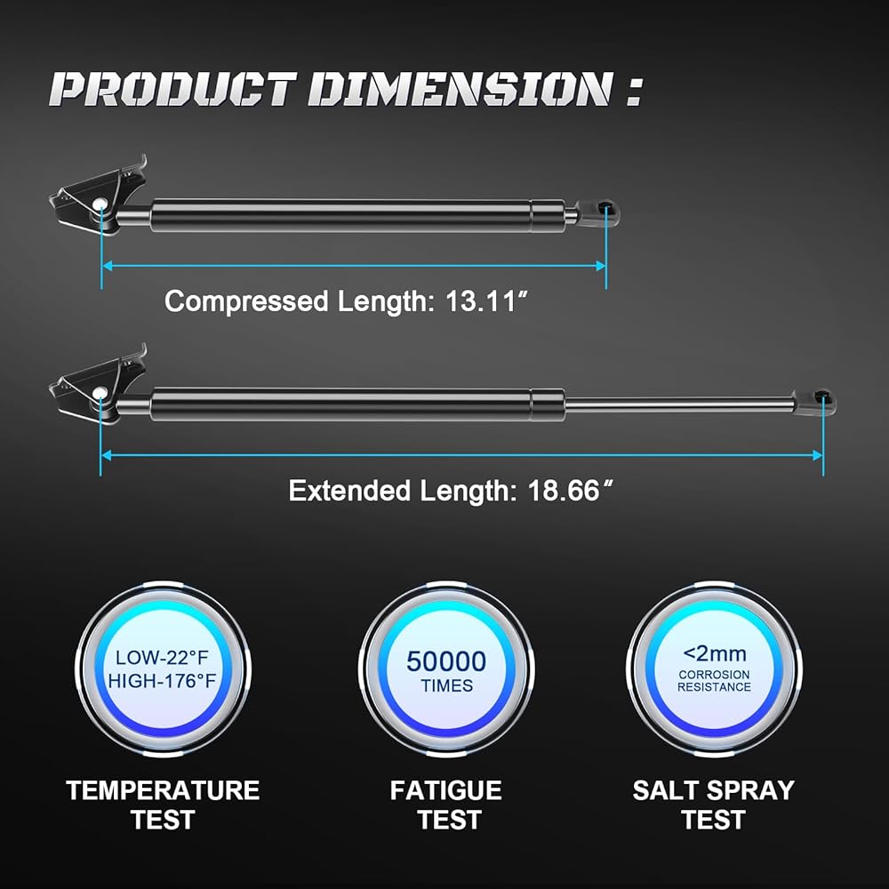 • ✔ معلمة الدعامات: الطول الممتد: 18.66 بوصة، الطول المضغوط: 13.11 بوصة؛ رقم الجزء OEM: 4856، 4857، 8195551، 8195552، 10656، 10655، 901297، 72761، RB8795572، 95572، 612881.
