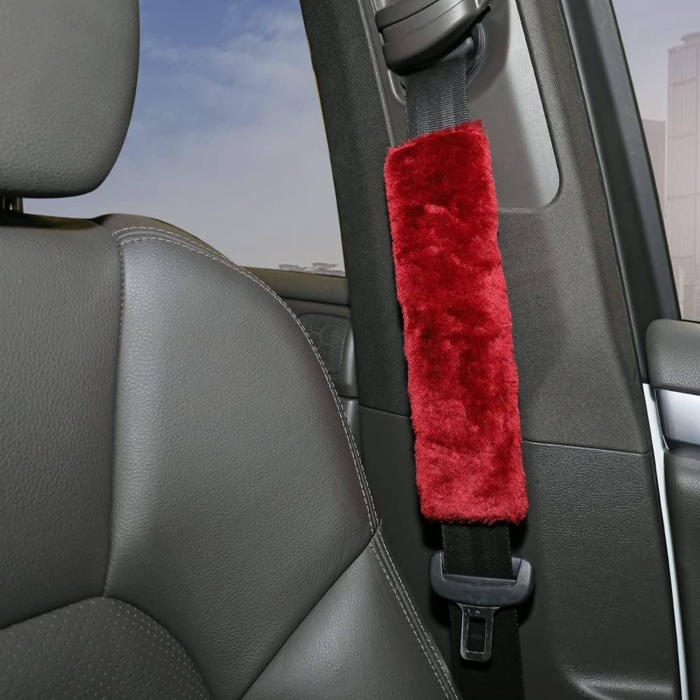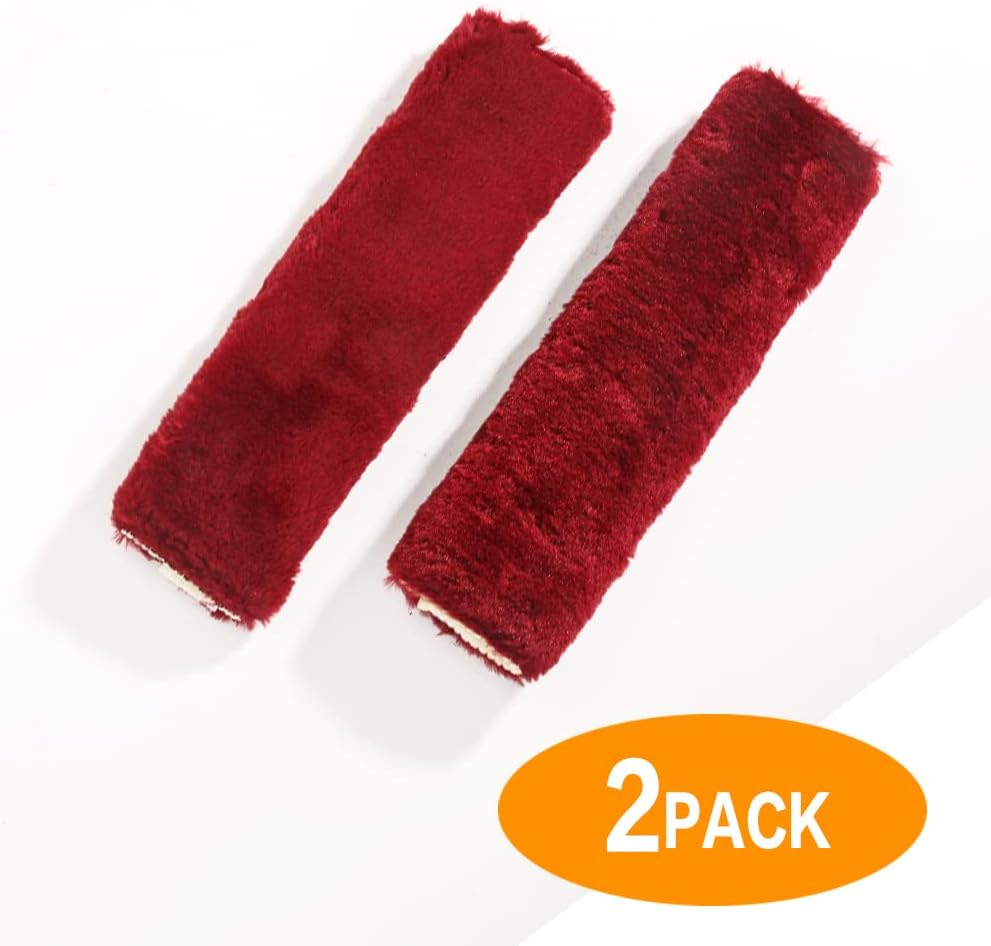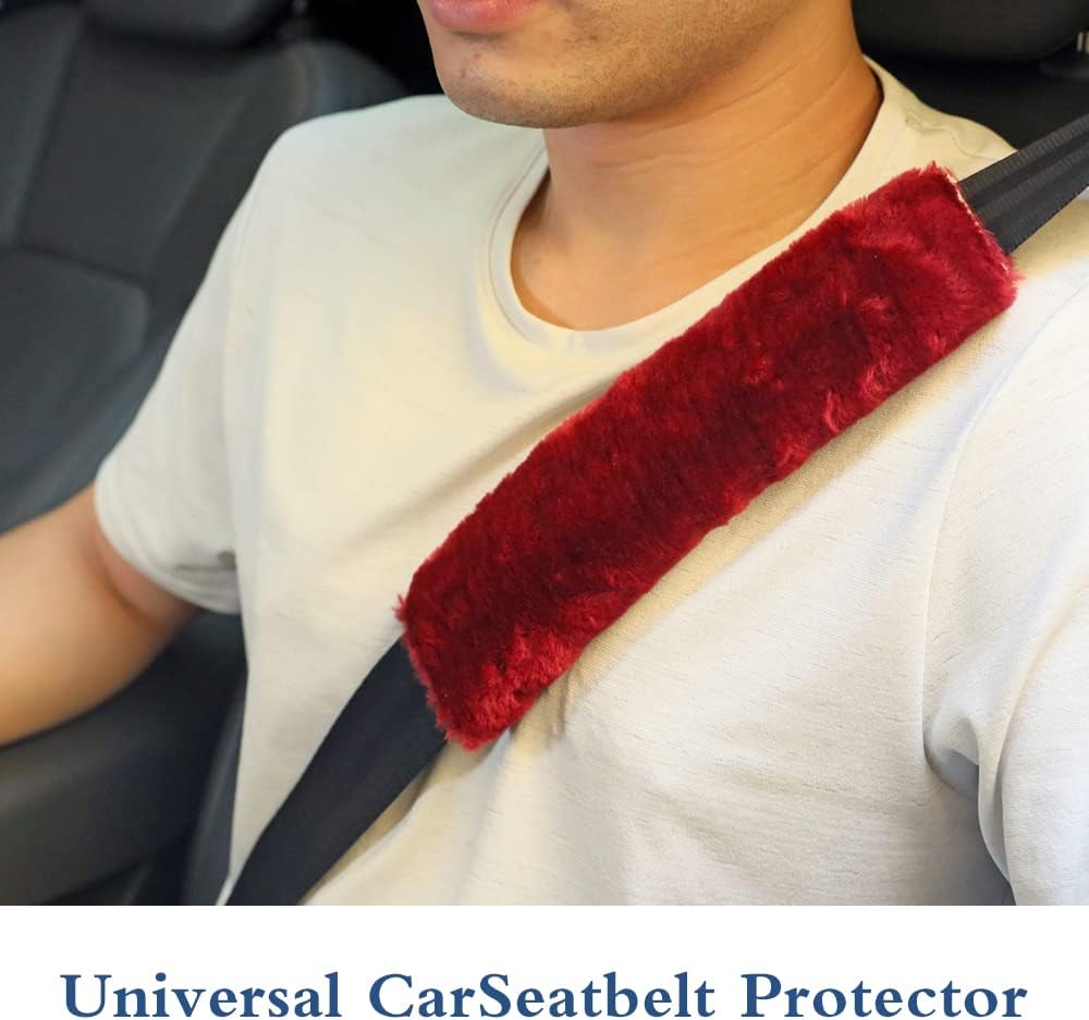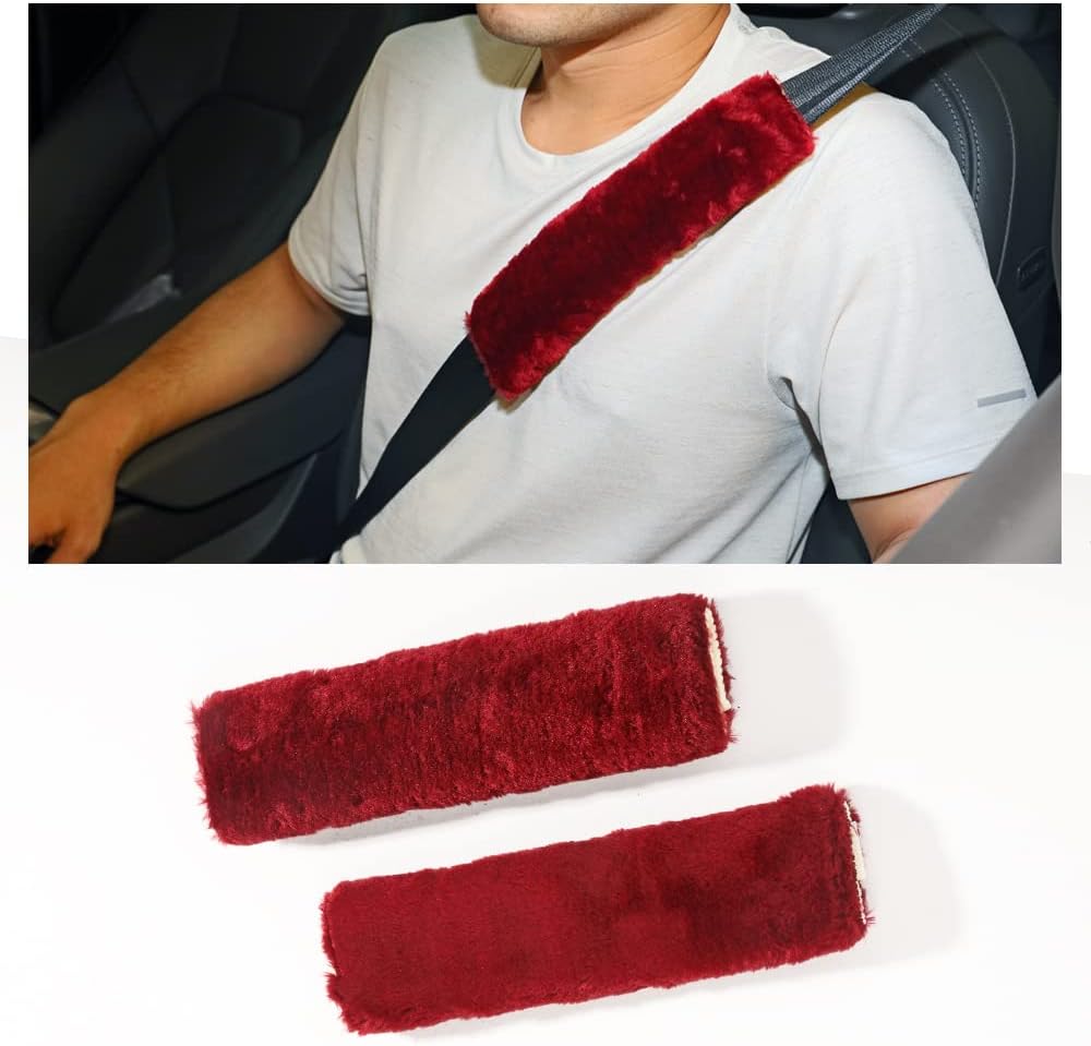 Banseko 2 حزمة منصات حزام مقعد السيارة، وسائد حزام الأمان وسادة الكتف، وأغطية حزام الكتف حزام الأمان، لينة ومريحة تحمي الرقبة والكتف (الفراء النبيذ الأحمر)