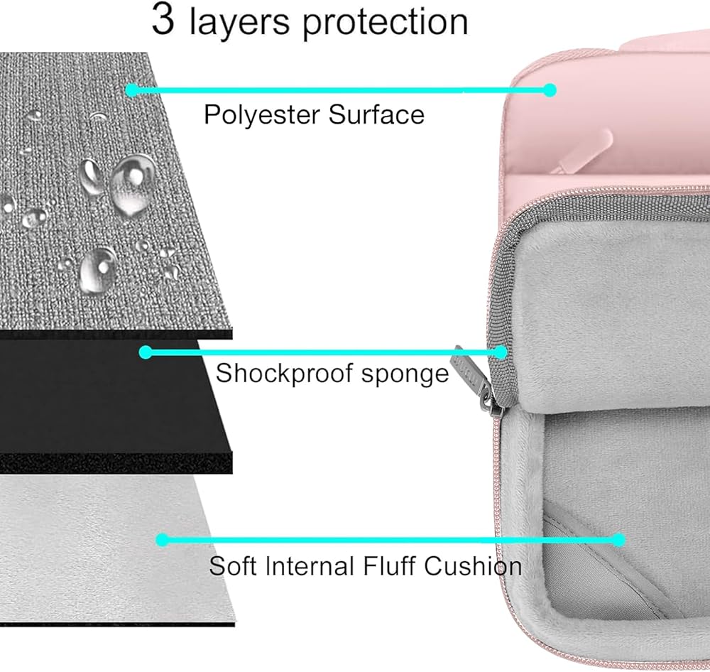 حقيبة حمل الكمبيوتر المحمول المنتفخة الواقية من الصدمات بزاوية 360 درجة، الأبعاد الداخلية: 12.6 × 0.79 × 8.66 بوصة (الطول × العرض × الارتفاع)؛ البعد الخارجي: 13.19 × 0.79 × 9.25 بوصة (الطول × العرض × الارتفاع). أبعاد الجيب الأمامي: 10.8 × 6.5 بوصة (الطول × العرض). مصنوع من مادة البوليستر المتينة والمنتفخة الناعمة الملمس، ويحمي الكمبيوتر المحمول الخاص بك من الانسكابات العرضية. نحيف وخفيف الوزن، ولا يزيد حجم جهازك ويمكن وضعه بسهولة في حقيبتك أو حقيبة الظهر أو أي حقيبة أخرى. مثالية للعمل واليومي والسفر.