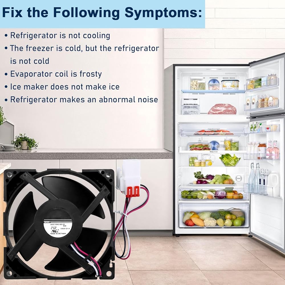 Applicable Symptoms - If your SamIsung refrigerator's fan was rattling badly, yet the unit was not frozen-up. or Freezer was at 1 degree but fridge stayed in the 50's. Please promptly check and replace the evaporator fan motor. Safely store any food that could deteriorate while the power is off and unplug the refrigerator before installing this part. Wear work gloves to protect your hands.