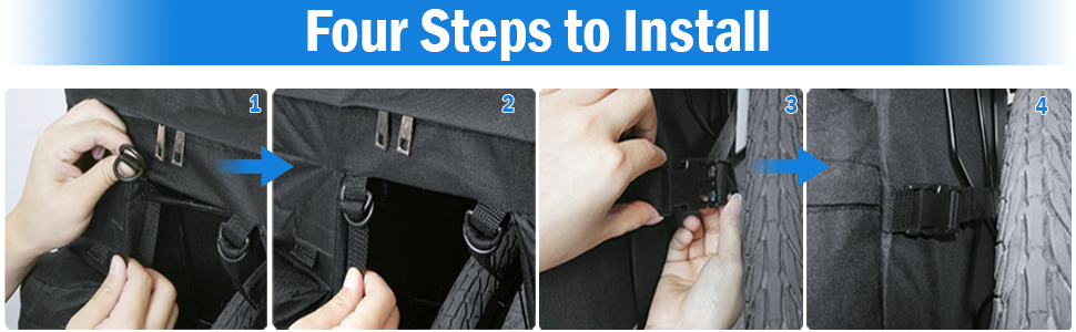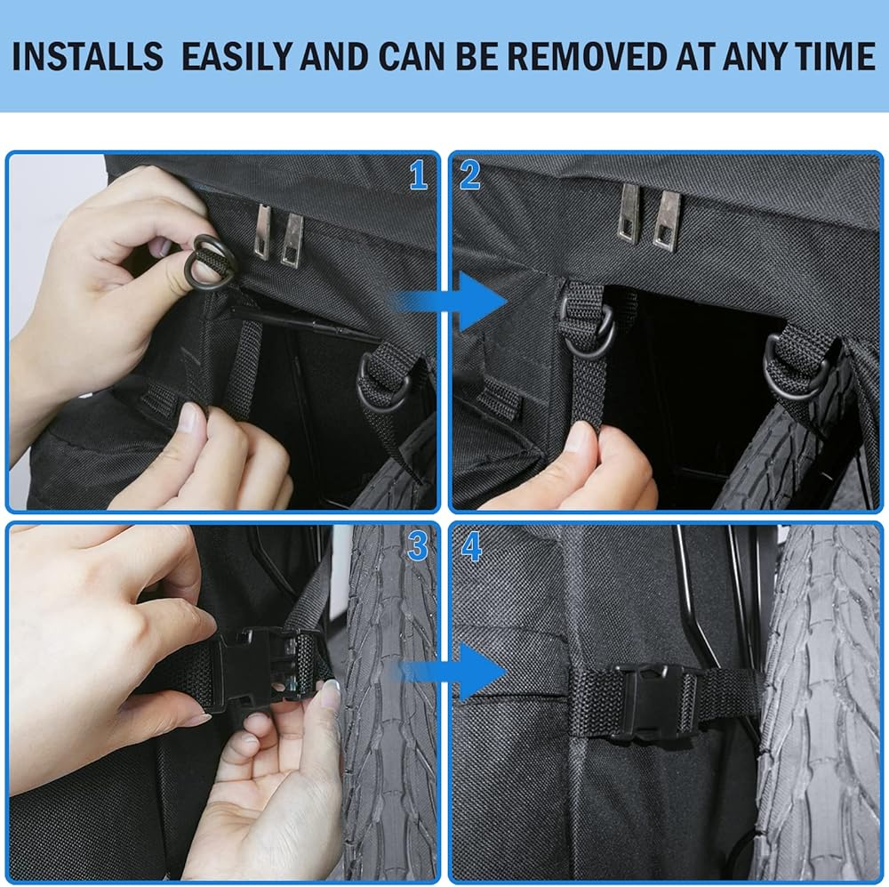 【سهلة التركيب】: قم بتركيبها على حقيبة رف الدراجة بشكل مثالي باستخدام أربعة أشرطة خطافية وحلقات وشريطين مطاطيين قابلين للتعديل على الجزء الخلفي من حقائب الرف هذه، ولن تقلق من ارتدادها أثناء الركوب. ويمكن استخدامه على جميع أنواع الدراجات للبالغين التي تحتوي على حامل خلفي.