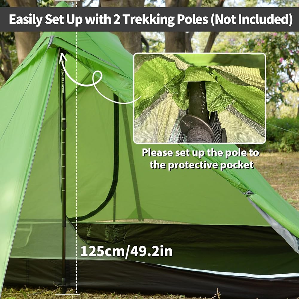 GEERTOP خيمة خفيفة 2 شخص الرحلات خيمة عمودية مقاوم للماء طبقة واحدة خيمة التخييم لحقيبة الظهر المشي لمسافات طويلة السفر في الهواء الطلق