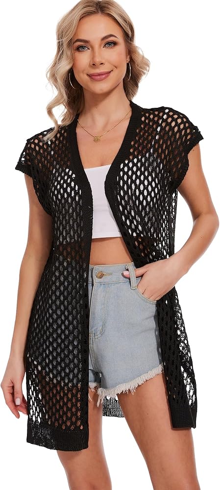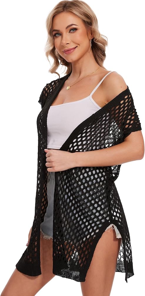 • التصميم: سترة قصيرة الأكمام للشاطئ بتصميم مجوف وملاءمة مريحة لملاءمة فضفاضة،