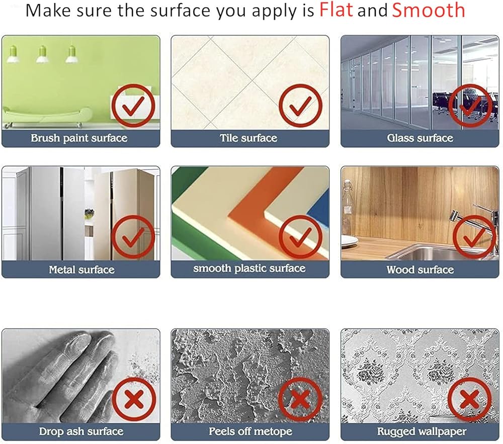 Some wall paints are designed to resist stickers, please check before purchasing. And freshly painted walls are not recommended. The texture of the wall sticker is smooth (not like a rough surface like normal classroom Green Board.)