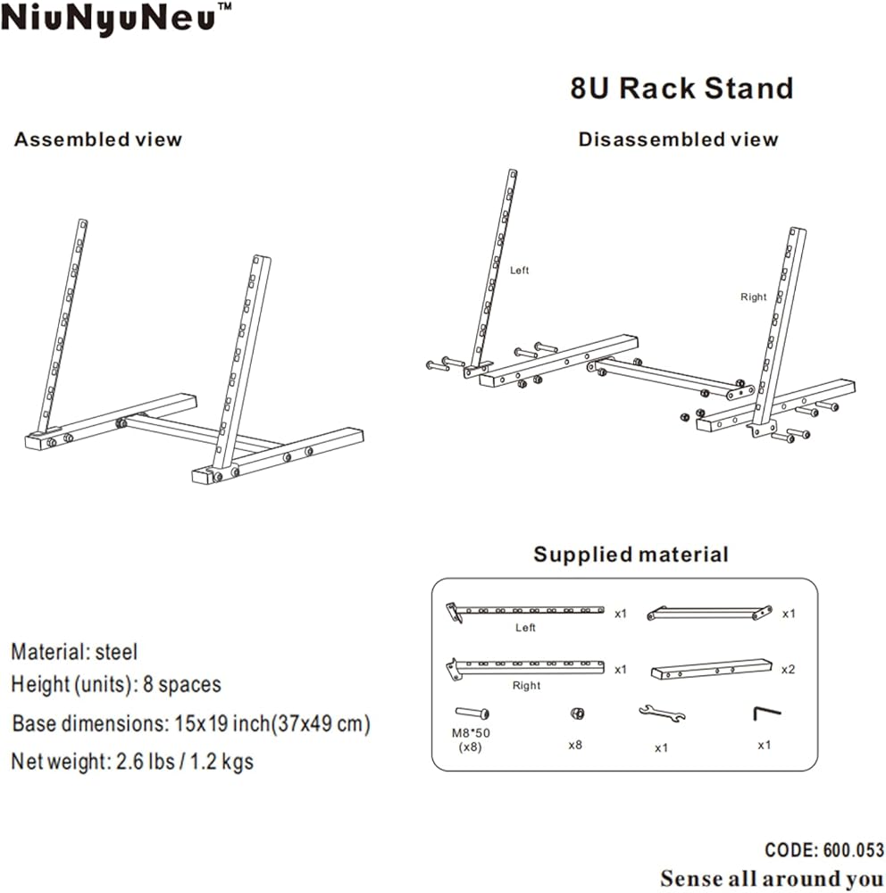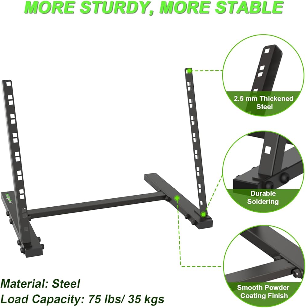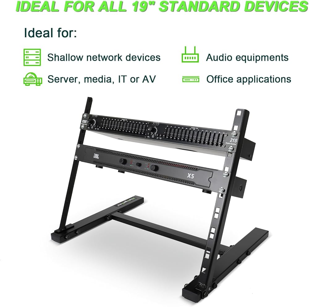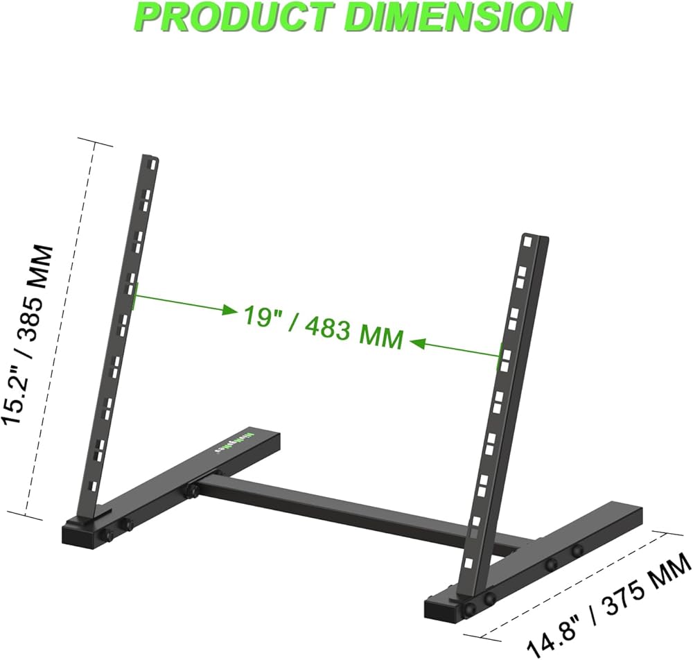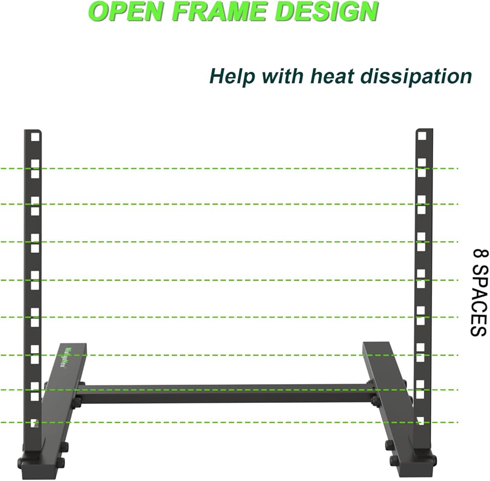 Sturdy and Stable: Made of 2.5mm thickened steel. With durable soldering, 8U rack stand can meet your need to place multiple devices. The load capacity is 75 lbs / 35 kgs.