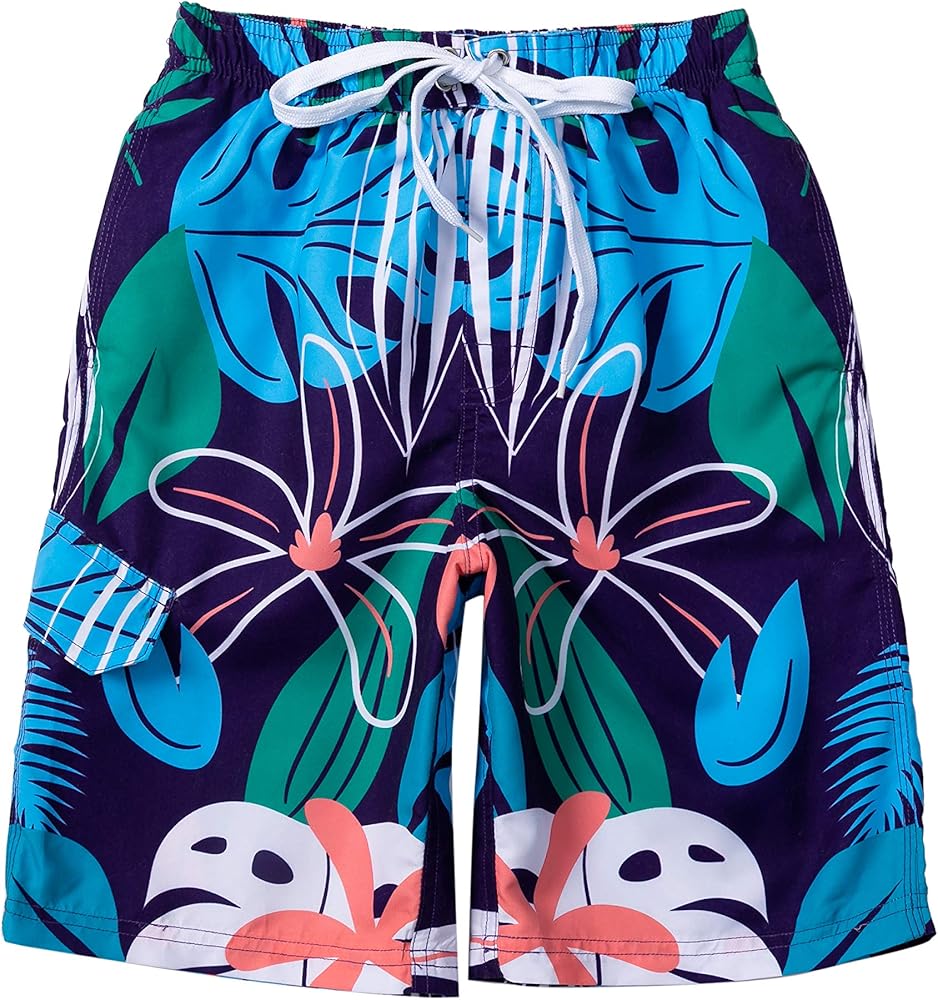 شورت سباحة مثالي بثلاثة جيوب. تتميز سراويل السباحة الرائعة للأطفال لدينا بجيبين جانبيين وجيب إضافي للتخزين الأساسي وحزام خصر مرن مع رباط إغلاق لملاءمة مريحة للغاية. تتميز سراويل السباحة للأولاد ببطانة شبكية قابلة للتنفس حتى يتمكن طفلك الصغير من ارتدائها بشكل مريح. المقاس مناسب للأطفال الصغار والصغار والأولاد الكبار المتوفر من عمر 2T إلى 16 عامًا.