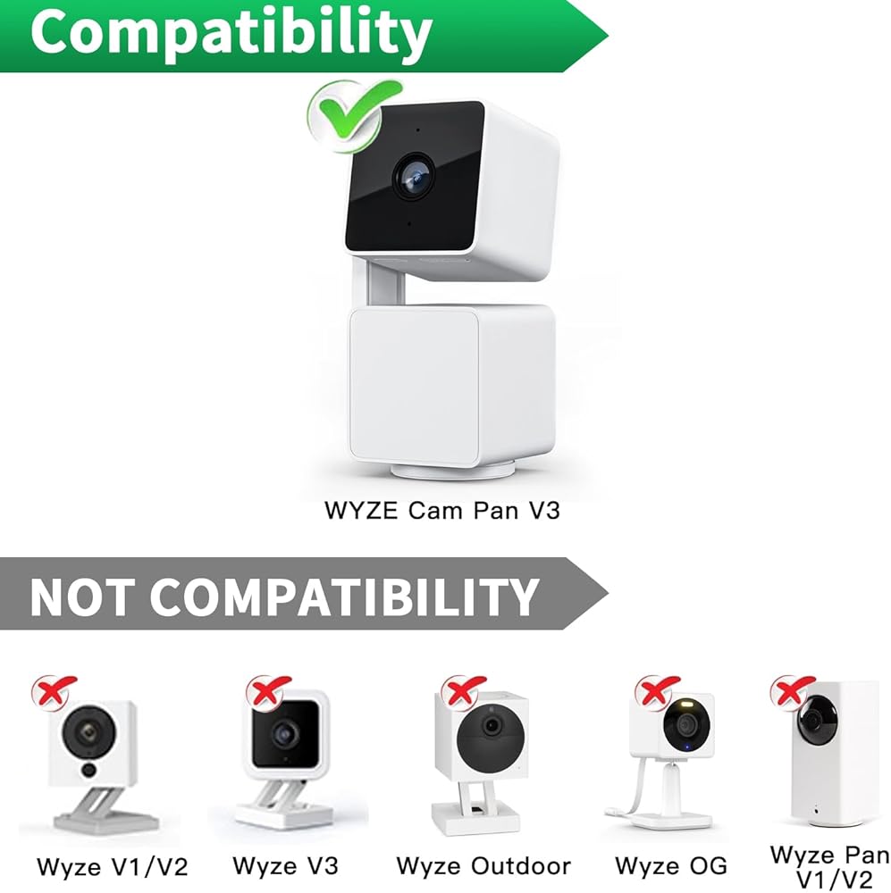 【التوافق: تم تصميم كابل تمديد USB الخاص بنا لكاميرات WYZE Cam Pan V3، غير متوافق مع Wyze v1/v2، أو Wyze OG أو أي كاميرا Wyze أخرى (ملاحظات: جميع الكاميرات غير متضمنة).
