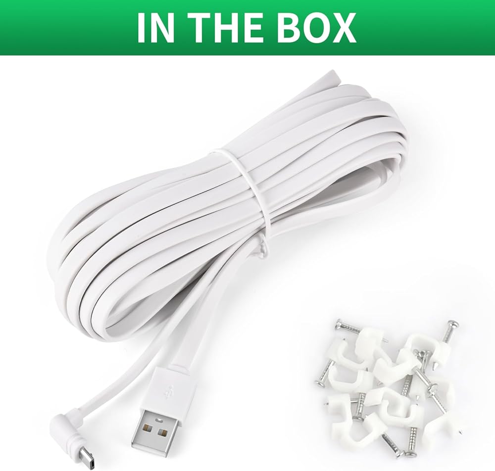 【وضع مرن】كابل طويل بما فيه الكفاية بطول 20 قدم/6.1 متر لوضع الكاميرا المرن أينما تفضل. سُمك 2 مم فقط، يمكن أن يتناسب الكابل المسطح بسهولة مع المساحات الضيقة مثل الأبواب والنوافذ، ويمنع التشابك ويوفر المساحة.