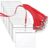 تتضمن الحزمة مع حامل بطاقة الهوية: 50 × حامل شارات أفقية شفافة (فارغة، لا يوجد ورق بالداخل) + 50 × حبل تعليق أزرق.