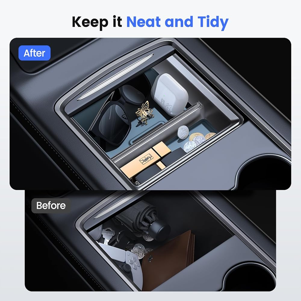 【𝗠𝗮𝘅𝗶𝗺𝗶𝘇𝗲 𝗬𝗼𝘂𝗿 𝗦𝗽𝗮𝗰𝗲 & 𝗣𝗿𝗶𝘃𝗮𝗰𝘆】تضيف صينية تنظيم وحدة التحكم Tesla هذه طبقة إضافية من مساحة التنظيم إلى جهاز Tesla الخاص بك، مما يضمن أن جميع احتياجاتك يتم تخزين العناصر بطريقة منظمة وتوفير تجربة تخزين مثالية. ولكن هذا ليس كل شيء - يوفر منظم وحدة التحكم المركزية Tesla Model Y أيضًا حماية الخصوصية لممتلكاتك. ما عليك سوى دفع منظم وحدة التحكم المركزية Tesla Model 3 للداخل، وسيتم إخفاء العناصر الخاصة بك تمامًا