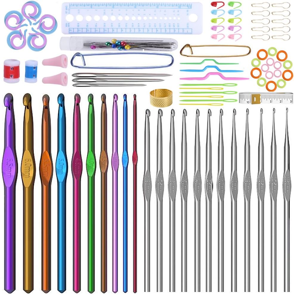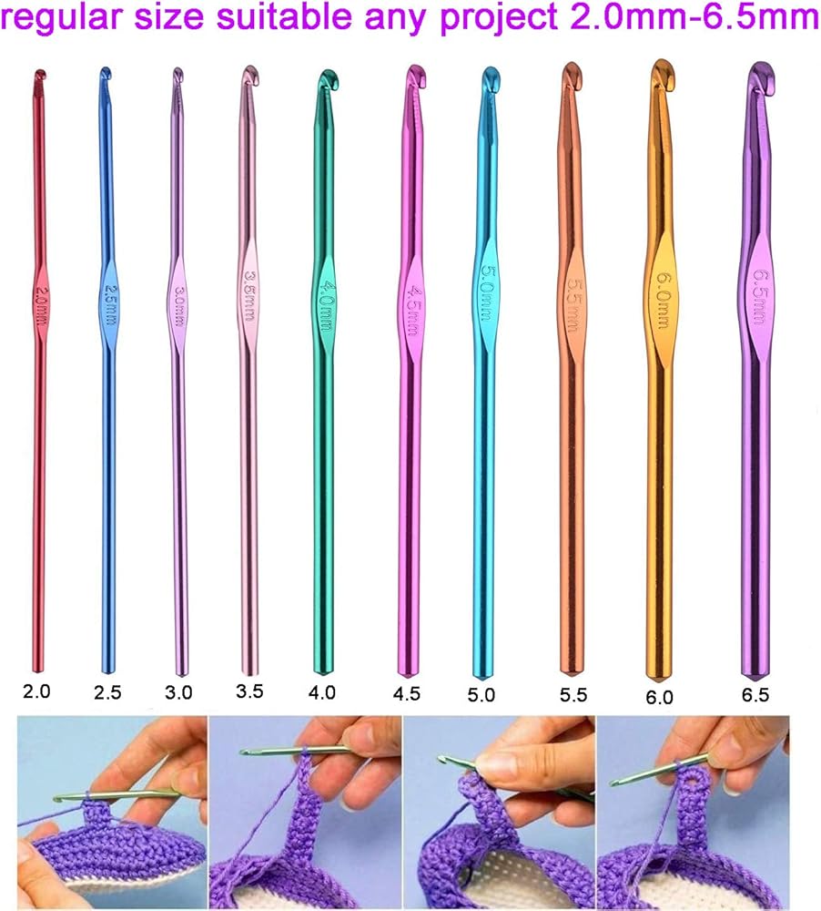 KOKNIT all in a nice waterproof crochet bag, the double layer design to store your more crochet hook kit, zipper closure can let the case open up all the way flat, 21 pcs different size non-slip handles hooks, and complete knitting accessories set, meeting your different needs. This professional sets could help you finish a nice project.