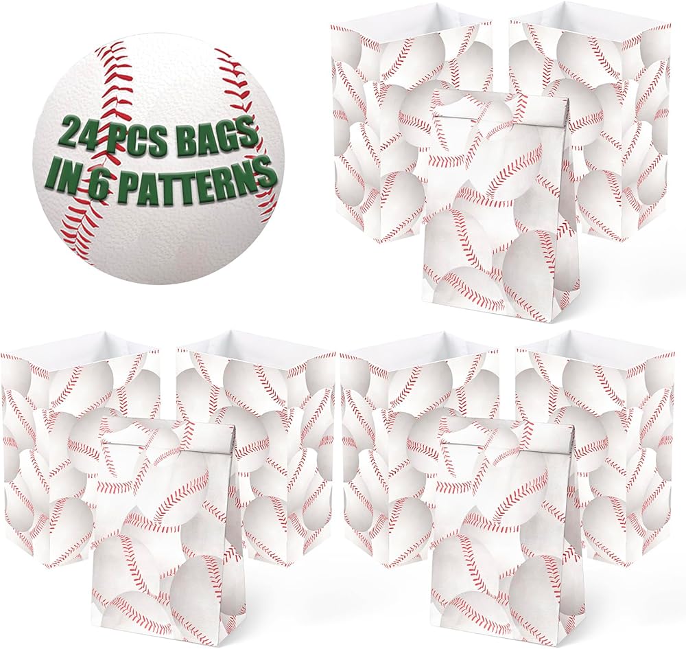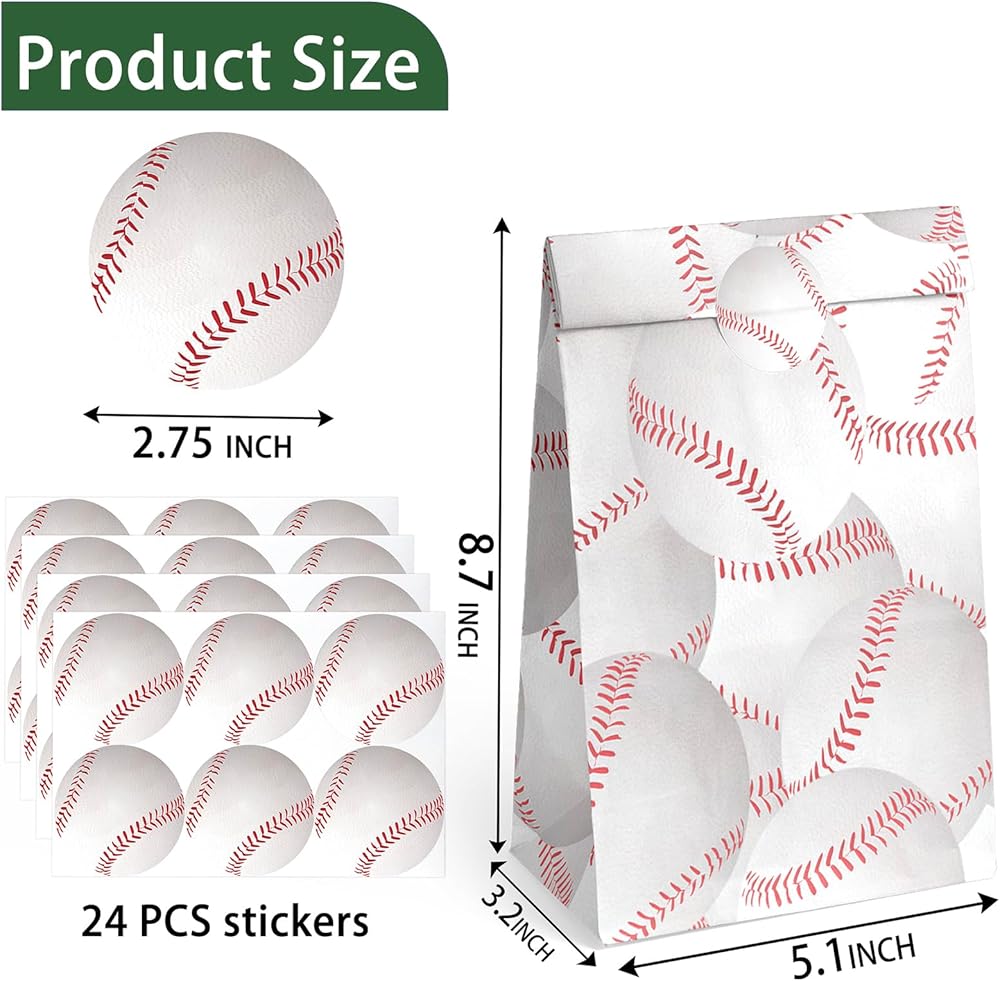 العبوة الكاملة - تحتوي كل عبوة على 24 كيسًا ورقيًا للبيسبول مصنوعة بدقة و24 ملصقًا نابضًا بالحياة. لا تتردد في مزج الملصقات والحقائب ومطابقتها لتخصيص المظهر حسب رغبتك.