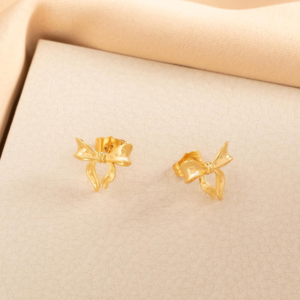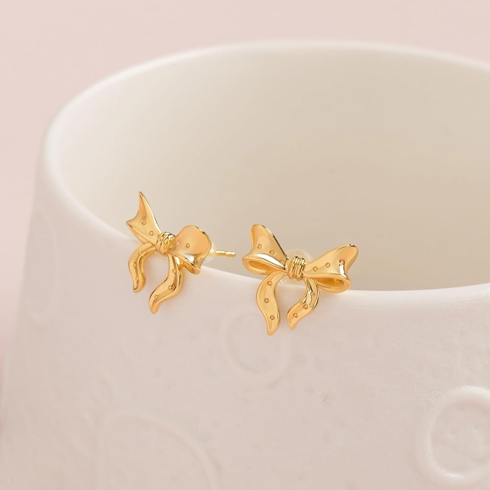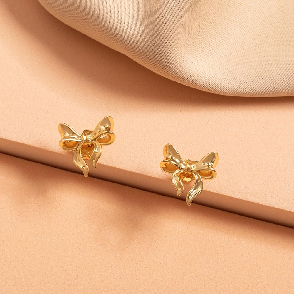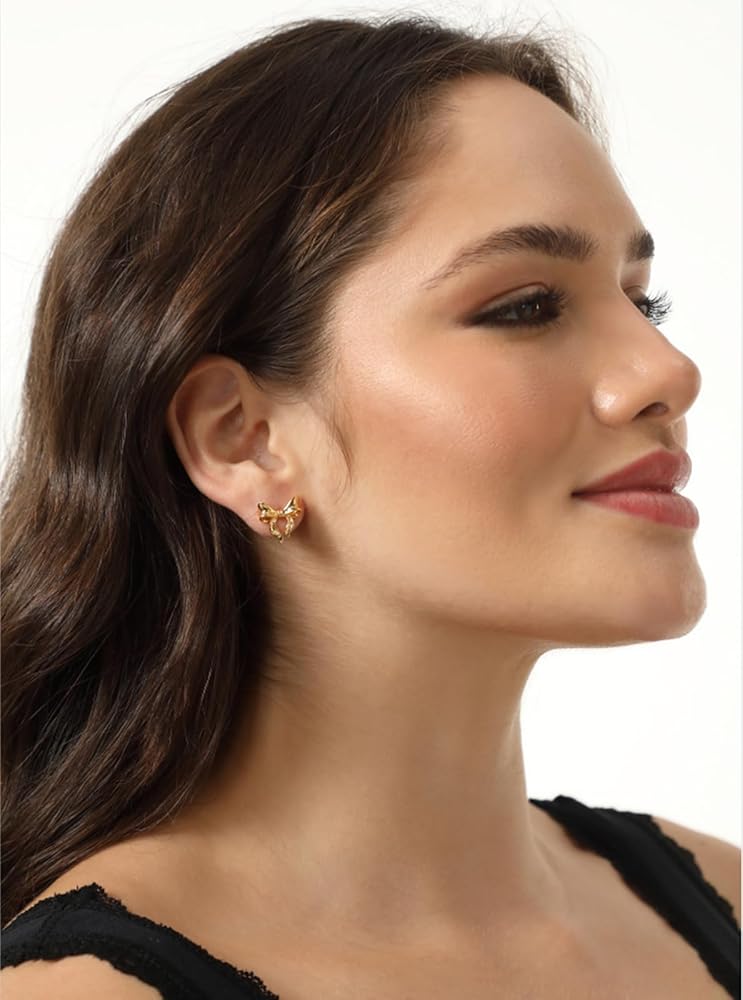 أقراط بعقدة على شكل شريط على شكل فيونكة: أقراط على شكل فيونكة ذهبية حديثة وبسيطة تجعلك تبدو أكثر أناقة وسحرًا. يضيف تصميمه الفاخر والبسيط لمسة من اللمعان الأنيق إلى حياتك اليومية