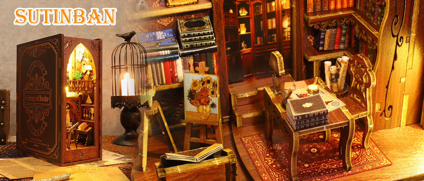 Sutinban DIY Book Nook Kit, DIY Miniature House Kit, 3D Wooden Puzzle Bookshelf Decor