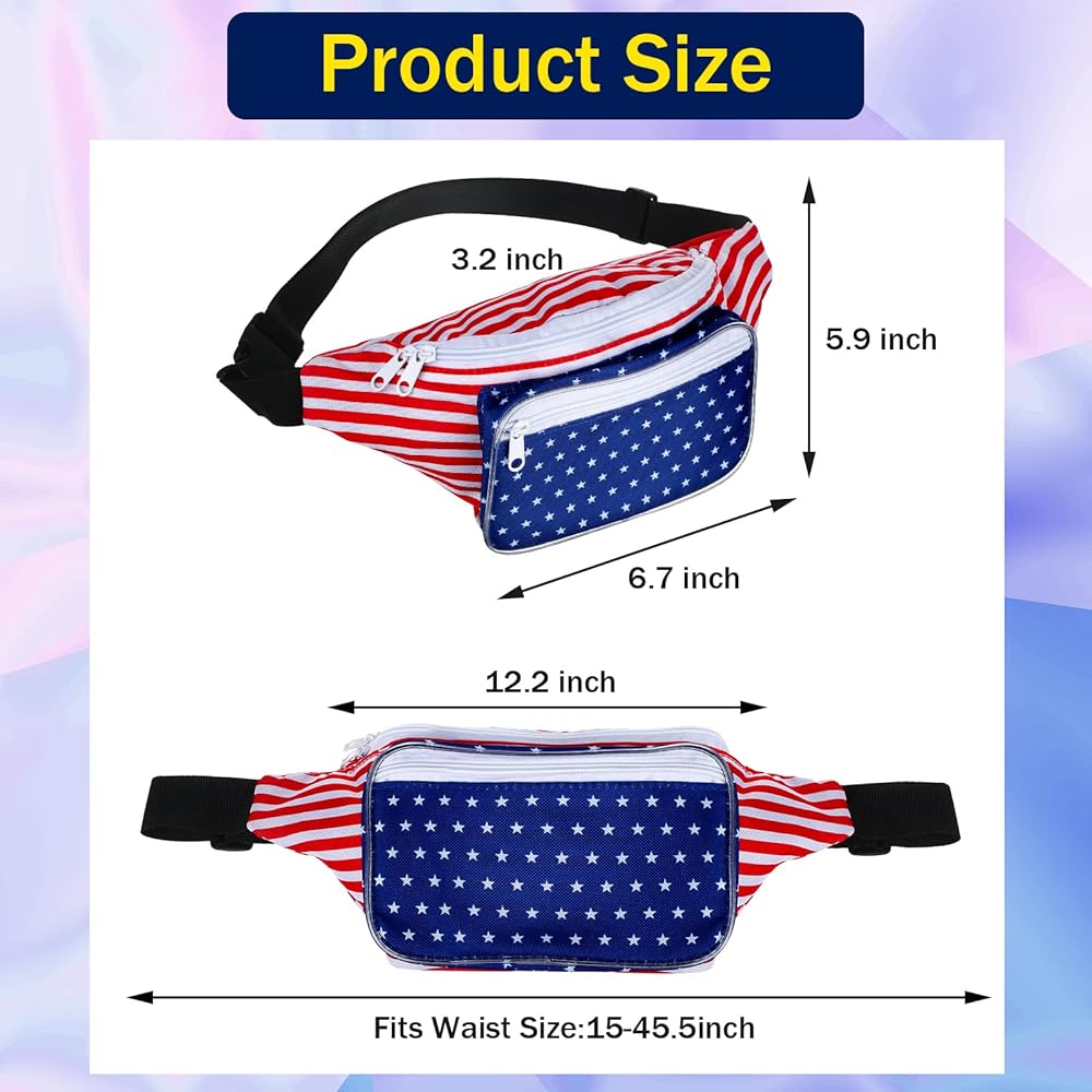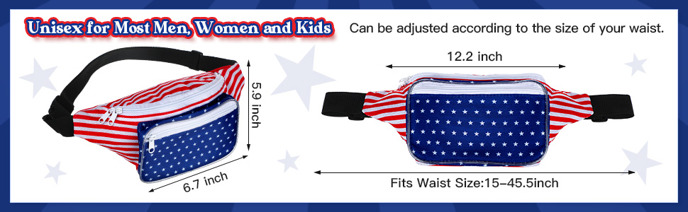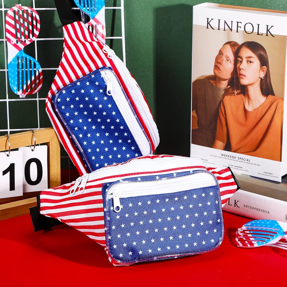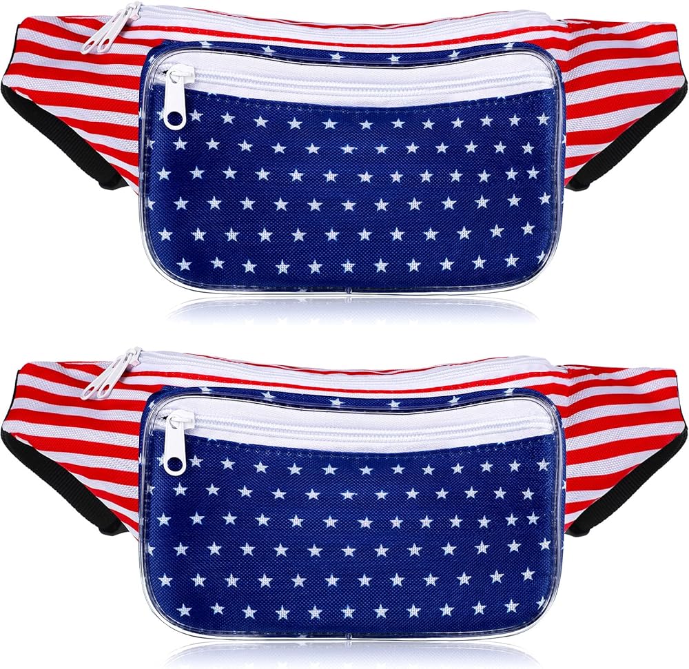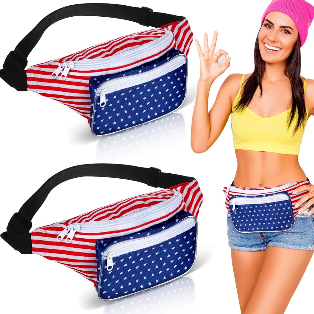 قطعتان من حقيبة فاني العلم الأمريكي، حقيبة الولايات المتحدة الأمريكية، حزمة الخصر في الرابع من يوليو، أحمر أبيض ونجوم زرقاء مخططة، حقيبة فاني، حزمة فاني وطنية قابلة للتعديل، ملحقات حقيبة الخصر الأمريكية للسفر والرياضات الخارجية