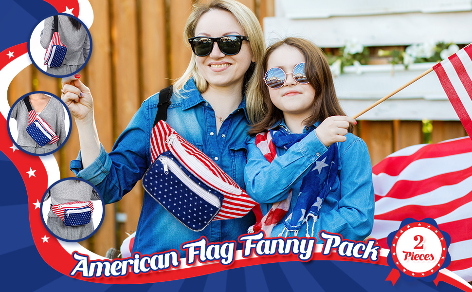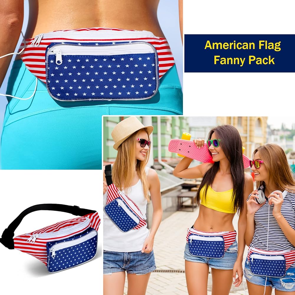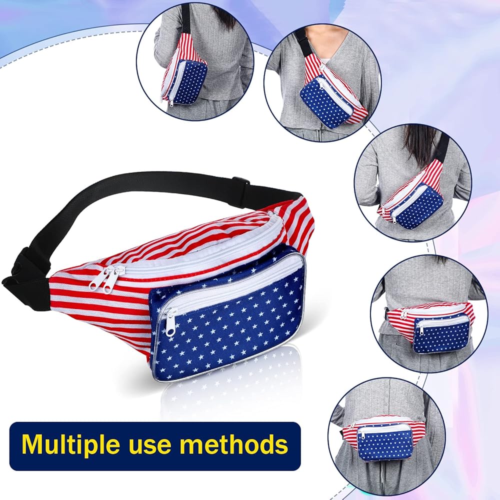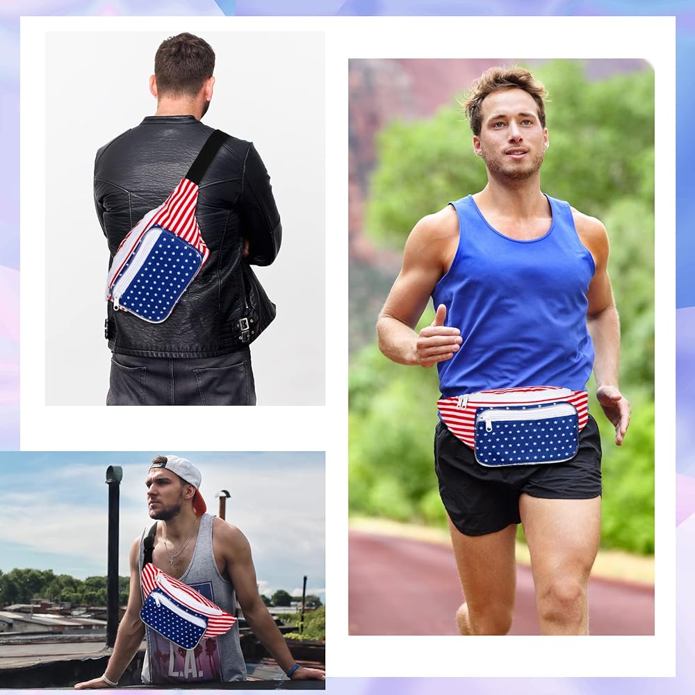 قطعتان من حقيبة فاني العلم الأمريكي، حقيبة الولايات المتحدة الأمريكية، حزمة الخصر في الرابع من يوليو، أحمر أبيض ونجوم زرقاء مخططة، حقيبة فاني، حزمة فاني وطنية قابلة للتعديل، ملحقات حقيبة الخصر الأمريكية للسفر والرياضات الخارجية
