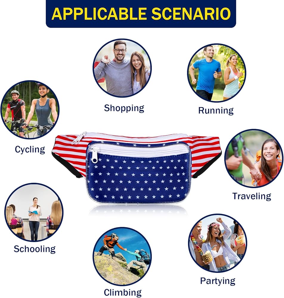 كافية للاستخدام: تحتوي حقائب فاني الولايات المتحدة الأمريكية على جيبين واسعين وجيب خلفي واحد، يمكن تطبيقهما لحمل احتياجاتك اليومية، مثل المفاتيح والمحفظة والهاتف الخلوي وما إلى ذلك، وسوف تحصل على قطعتين من حقائب فاني العلم الأمريكي في عبوة واحدة، كمية كافية تلبي احتياجاتك للاستخدام اليومي والاستبدال، يمكنك مشاركتها مع أختك وأخيك ووالديك لإظهار اهتمامك